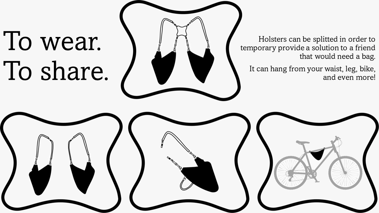 These holsters, essentially made from recycled materials, do give a true feeling of power to the ones wearing them. They are extremely convienient to go running, shopping, working, climbing, travelling, dancing, kissing, partying, or basically live with.