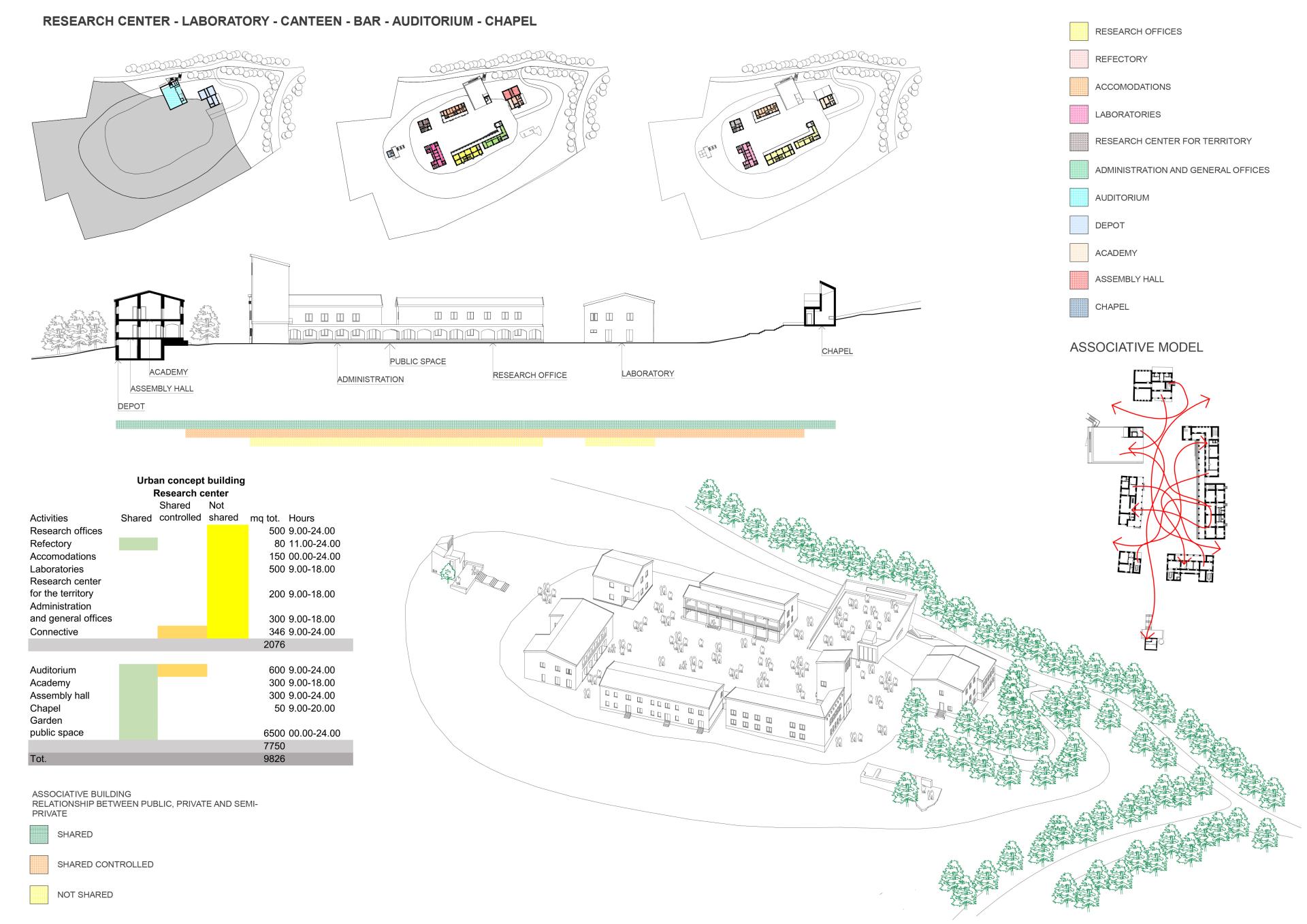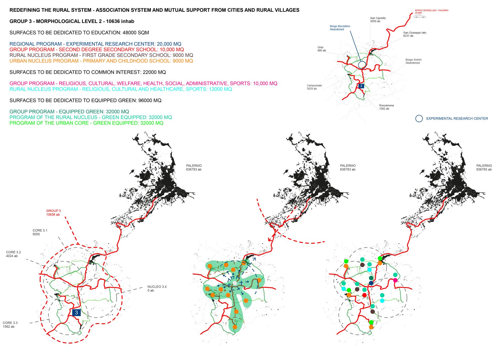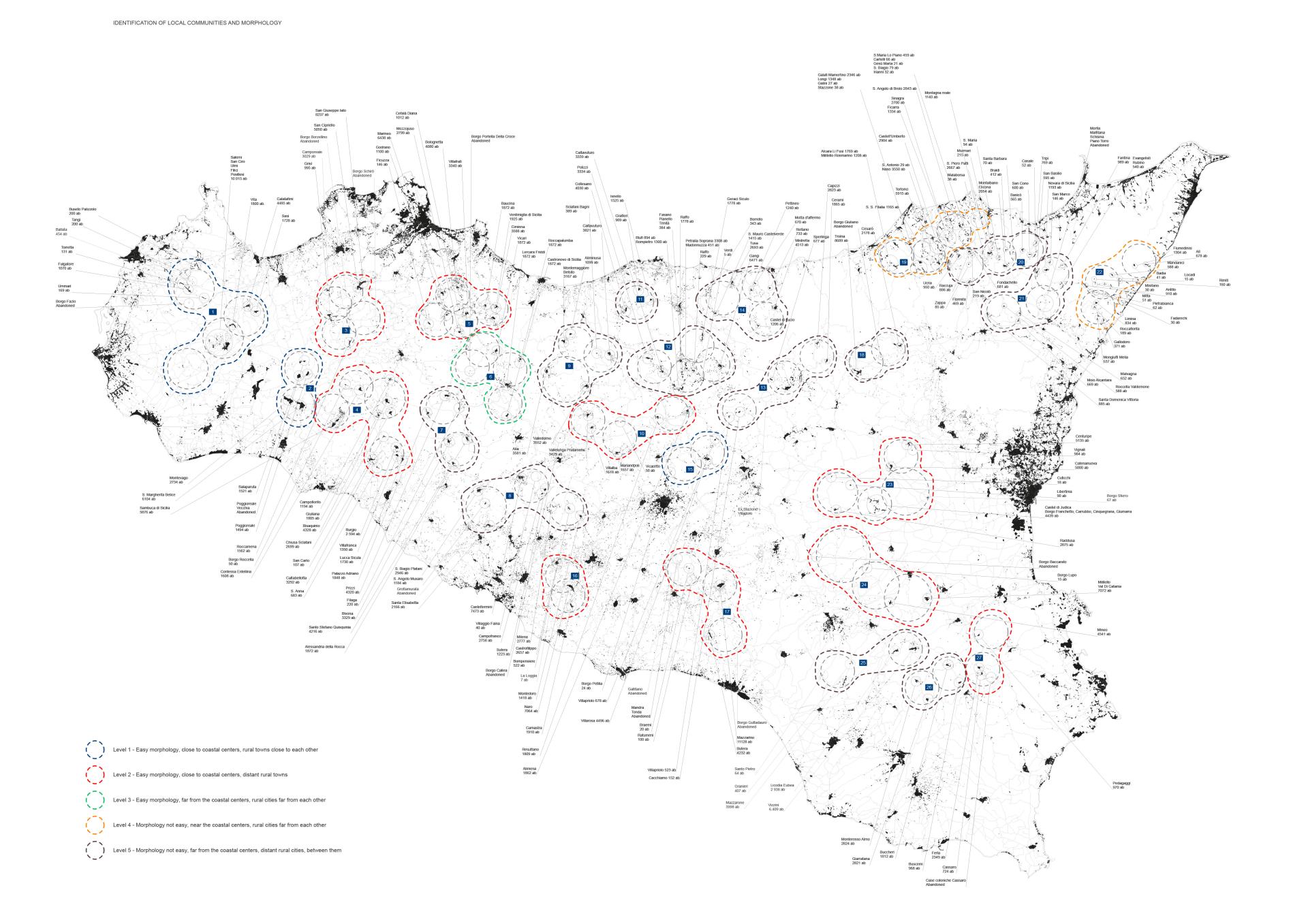 The goal of this project is to interpret both the productive dimension and that of people's lives within the same design phase, through an inclusive process that connects the entire rural system. The network of research centers on a regional scale constitutes the main structure from which to activate this process. They are condensing elements of research, dialogue, design and planning of new interventions, spaces in which young researchers interact with the population, with the local business world and together find solutions to counter the depopulation of inland areas. Each structure planned by this project is based on criteria of multiscaliarity and multidisciplinarity and multi-usability. Agricultural enterprises are not conceived only in terms of production but as technological infrastructures supported by research centers capable of defining new paradigms in agricultural production according to high criteria of environmental sustainability. Green infrastructures are not conceived as they are as connecting structures between equipment, but as social spaces capable of hosting relational processes for leisure and free time and favoring the associative process as well as becoming green corridors that mitigate the effects of climate change . The multifunctional nature of the equipment and its placement in the countryside, according to the widespread rural system, allows high environmental standards at low cost, especially if related to urban forestry processes, guaranteeing high standards of sharing and strengthening the aggregative system. The careful reading of the context through the interpretation of the language will allow at the same time to design architectures with a high aesthetic level and related to the rural context.
