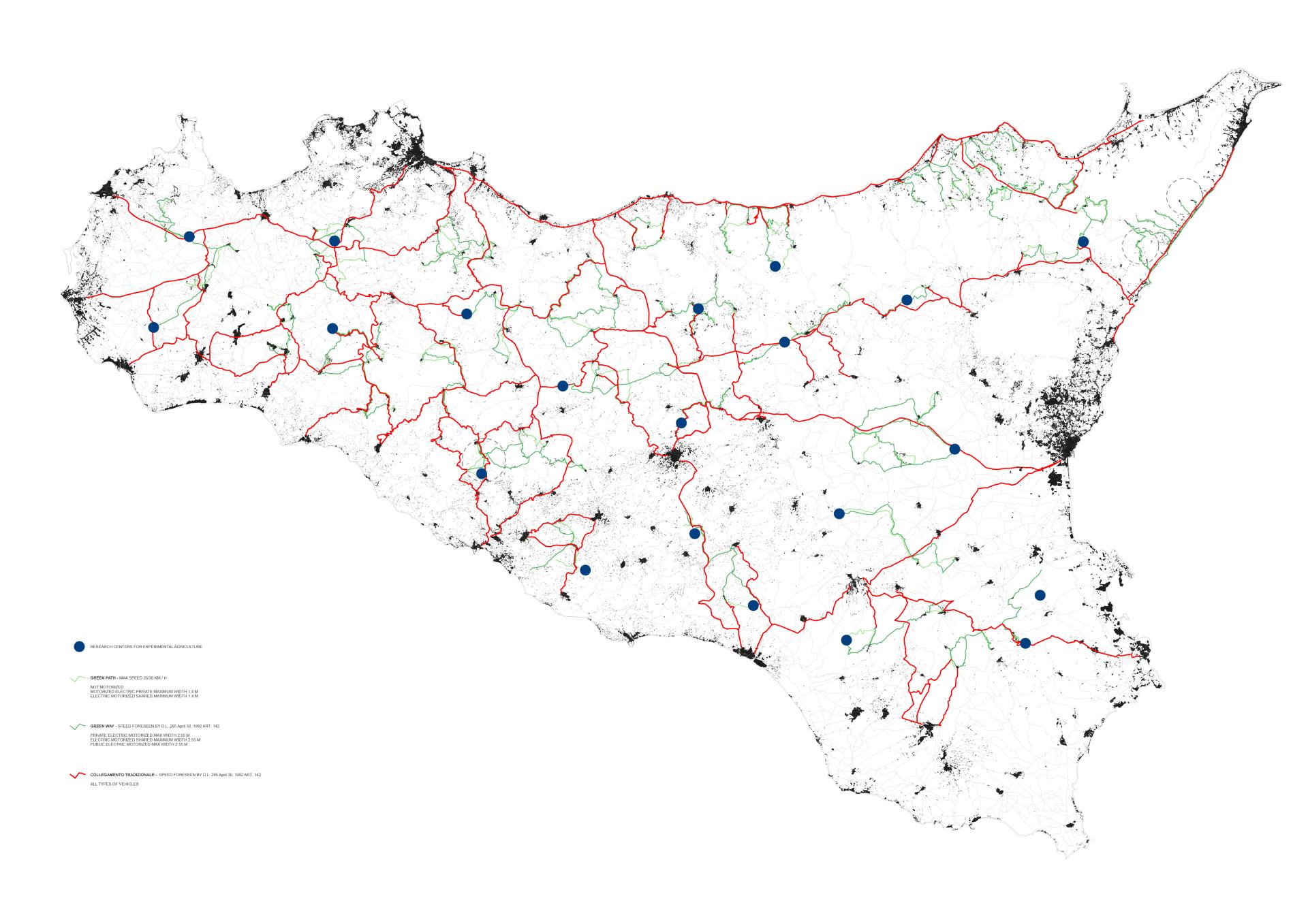 Care understood as an action of conscience and involvement of the population in actions aimed at defining a sustainable landscape design in relation to the activities that man carries out there. The location of research centers spread across the territory represents an opportunity capable of redefining the structure of the territory in environmental, production and strategic terms. Within the latter, a planning and territorial governance center is envisaged where, a series of figures arranged as civil and environmental engineers, architects and landscape architects, can identify solutions aimed at combating hydrogeological instability and planning interventions to be implemented locally in support of the territory and production activities. The rethinking of infrastructures as ecological green corridors provides, within them, spaces for recreation and rest from work activities, favoring a gradual reconnection with nature through public and sharing activities. The architectural interventions in support of this strategy must be designed in a flexible way and able to host different programs, stimulating the new associative and sharing system designed for rural areas. In aesthetic terms, a careful reading of rural patterns and their language will provide guidelines for the construction of the space in accordance with the perceptual qualities of the landscape.