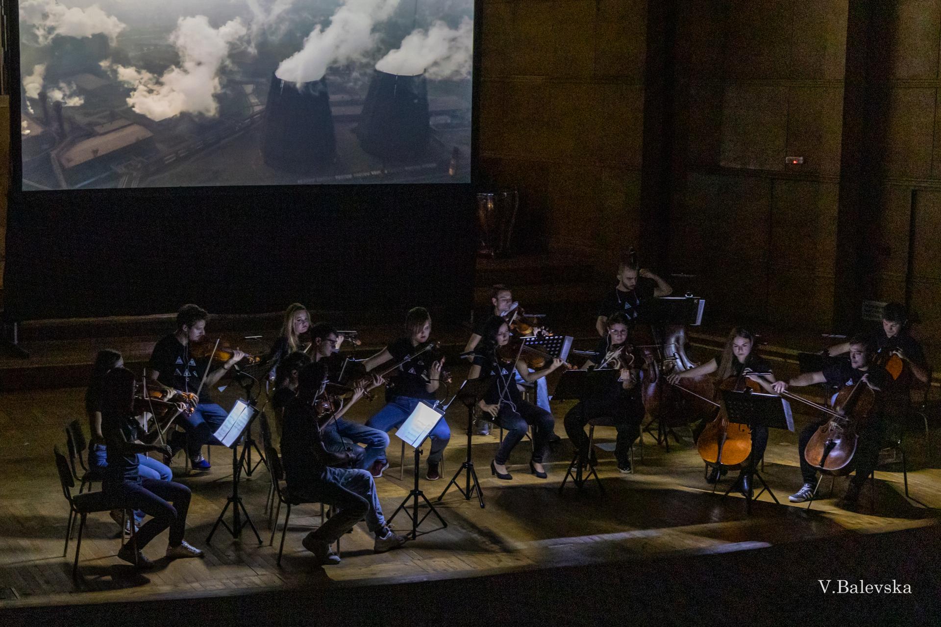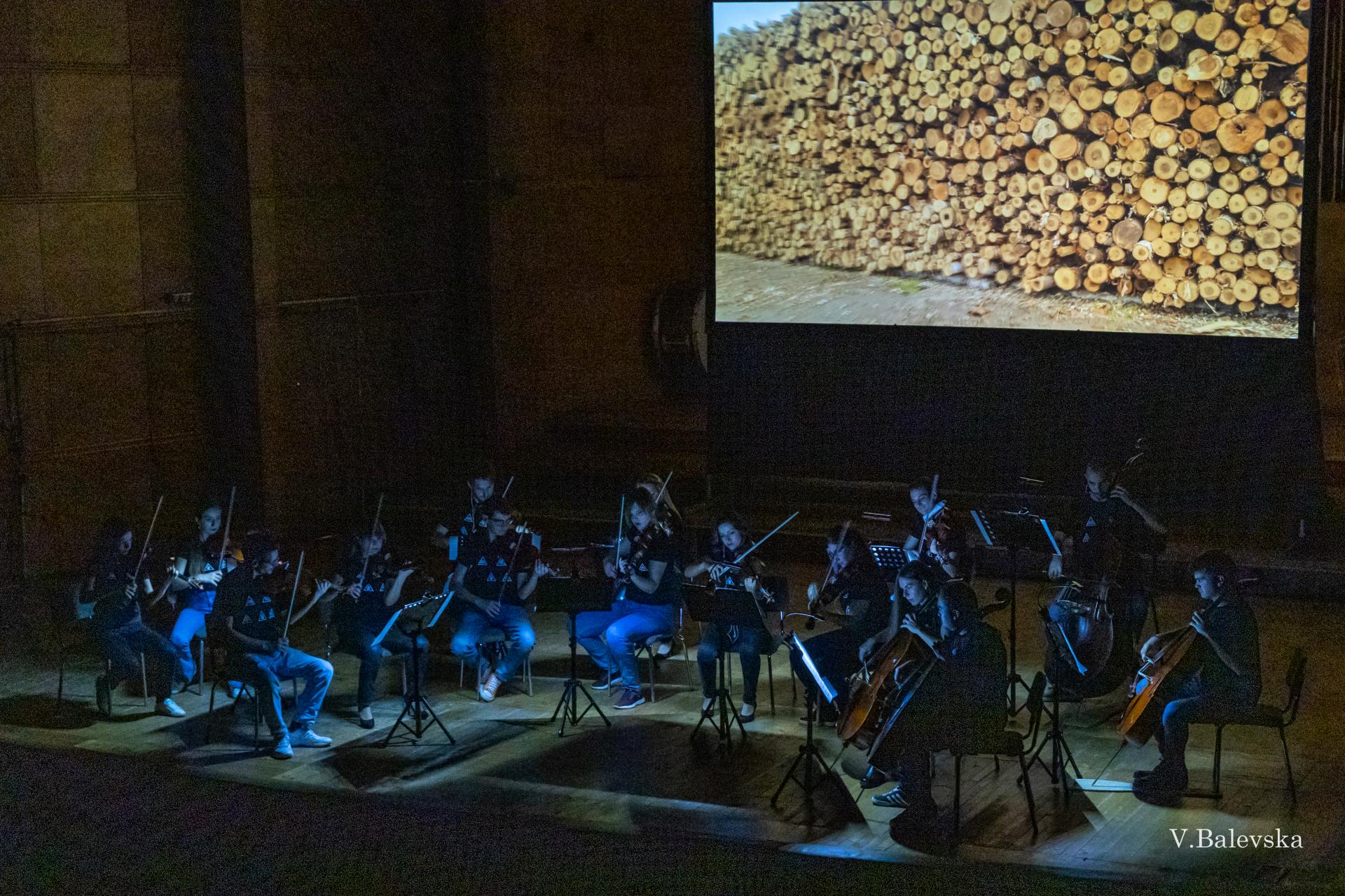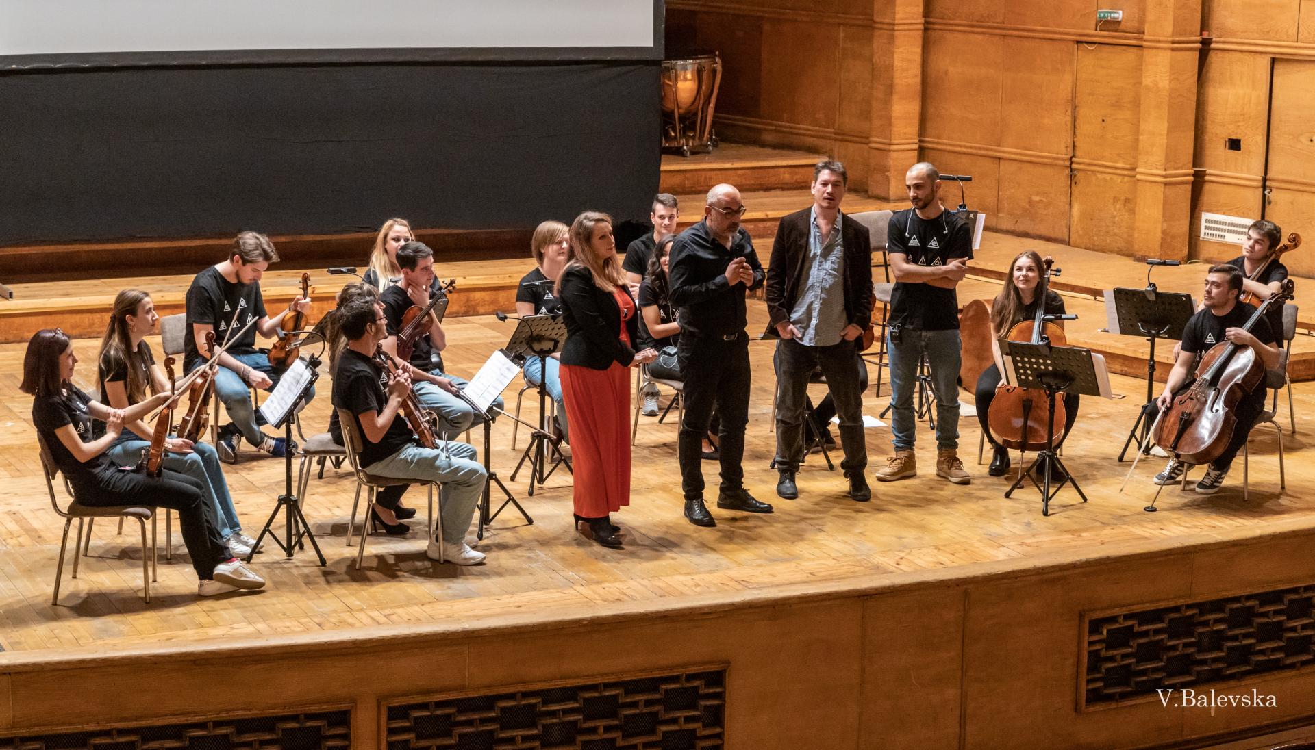 Other interesting element of the concert is the stage dressing of the orchestra – usually, as we know, classical orchestras are supposed to comply a certain dress code such as black/white suits for the gentlemen and concert dresses for the ladies. While playing the first part we are dressed as normal classical musicians, but before the second part of the concert, as the trailer goes along, we are changing costumes backstage so we enter the stage with black t-shirts, jeans and sneakers, which is revieled not before the finale of the concert.