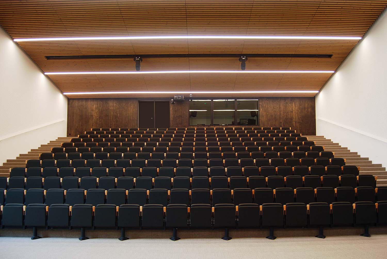 The project AG CAMPUS is a renovation of the ground level of an existing building in the very centre of Brussels. The campus is a meeting and learning place and includes classrooms, meeting rooms, a big lounge area, two big auditoria and much more.