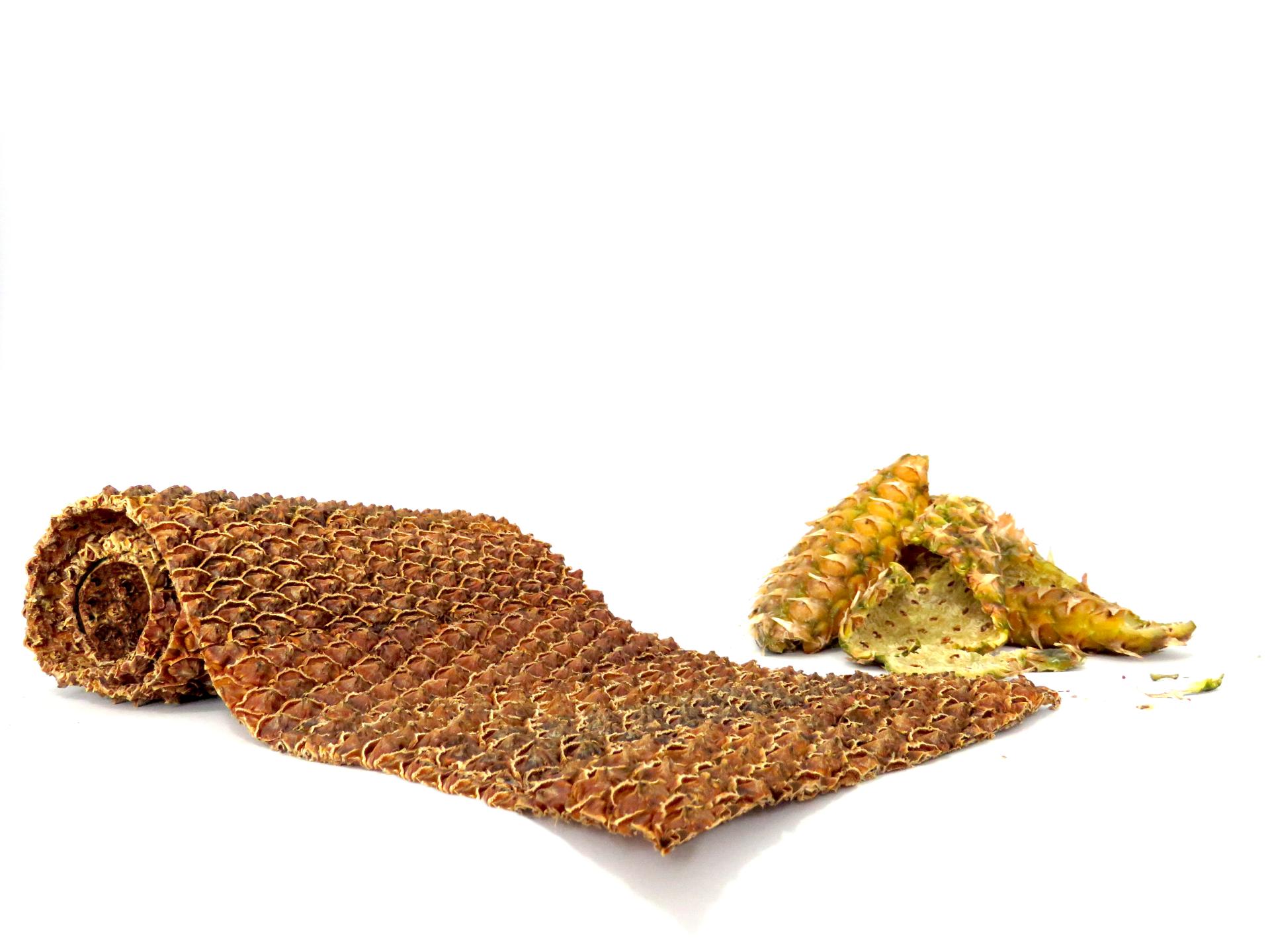 The production of the Ananasse material comes from the recovery of the peel that originates mainly from the processing of the fruit for IV and V range products, the discarded peel is recovered and relocated in a production scenario even before it becomes a waste to be disposed of, saving the environment a residue and noxious gas emissions caused by the natural fermentation process.