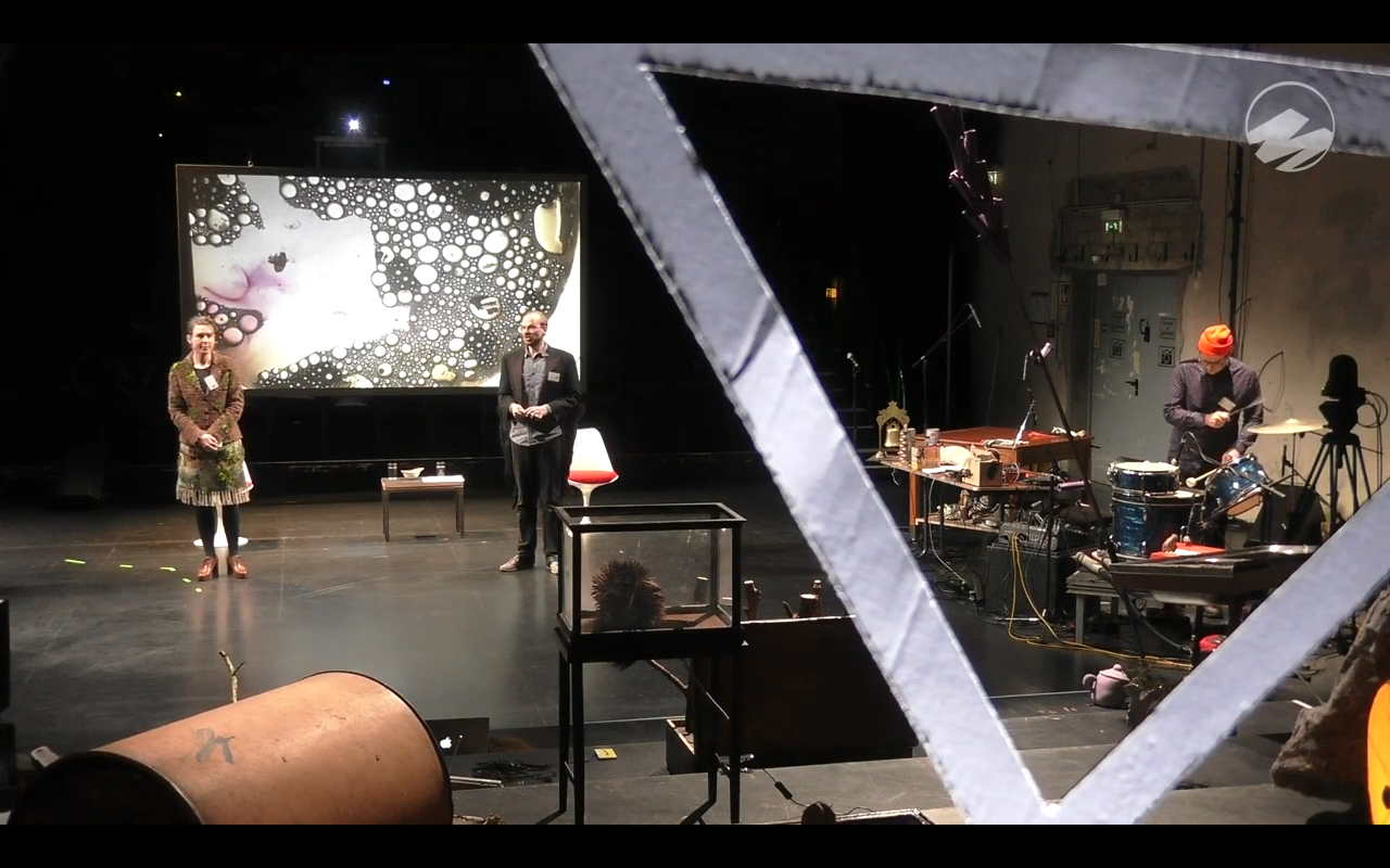 The stage space is populated with strange beings that stand for global challenges. Many elements of the stage were made from found objects and recycled materials - the aestheticization of these objects and materials contributes to a change in the audience's expectation of what is beautiful and desirable.