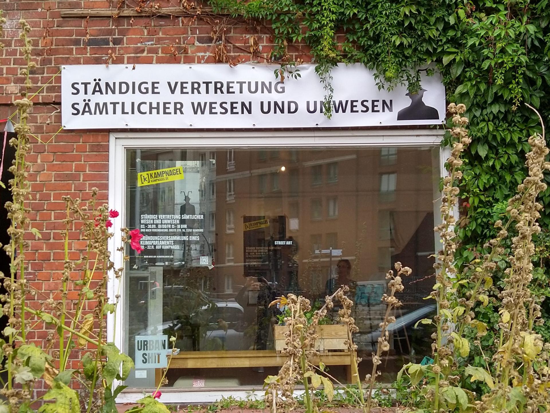 The Climate Parliament creates space for solution oriented discussion about the climate crisis. Everyone can make a valuable contribution to the process. The process consists of two phases: The first phase is the acquisition of ambassadors, which unfolds as the development of a social sculpture: An exhibition space is used as a climate office ("Permanent Representation of all Beings and Unbeings", there were dedicated opening hours), from which we fan out to find ambassadors. Means for this are canvassing previously researched and arranged contacts, press release, advertisements, posters, ads, social media posts and peddling at random. Anyone can participate, not only experts are called upon.The "Permanent Representation" is thereby at the same time a social place of encounter, in which (among other things in specific workshop formats) the empathy for other beings and unbeings and their representation of interests can be concretely tested and practiced by writing a speech for the Assembly.