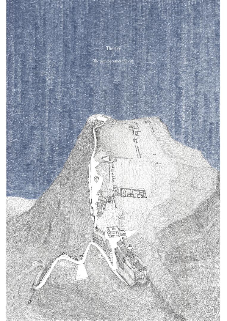 The aim is to investigate the history of the territory to design a path throughout the city to regain the mountain ridge and the lost relationship between city, sky and sea.