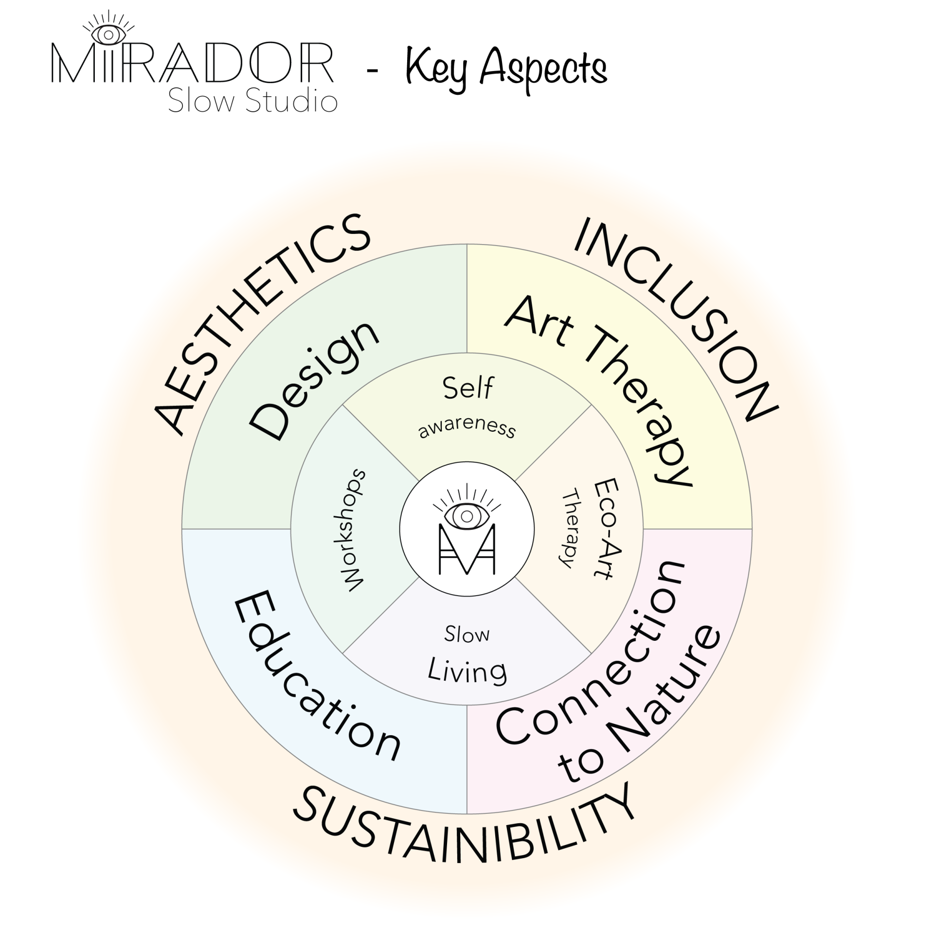 The love of arts and nature, and the intention to reduce our ecological footprint on Earth gave birth to a concept that unites all endeavours of the New European Bauhaus within a complex, educational experience.: The sustainable, aesthetic and inclusive nature of the project emerges as a perfect trio in the concept of Mirador Slow Studio. Our goal is to make our world a more liveable place by achieving the integrity of the individual with interdisciplinary methods. We believe that as one becomes more aware, accepting, and balanced, our society and our relationship with nature can take a more positive turn.