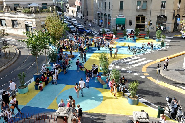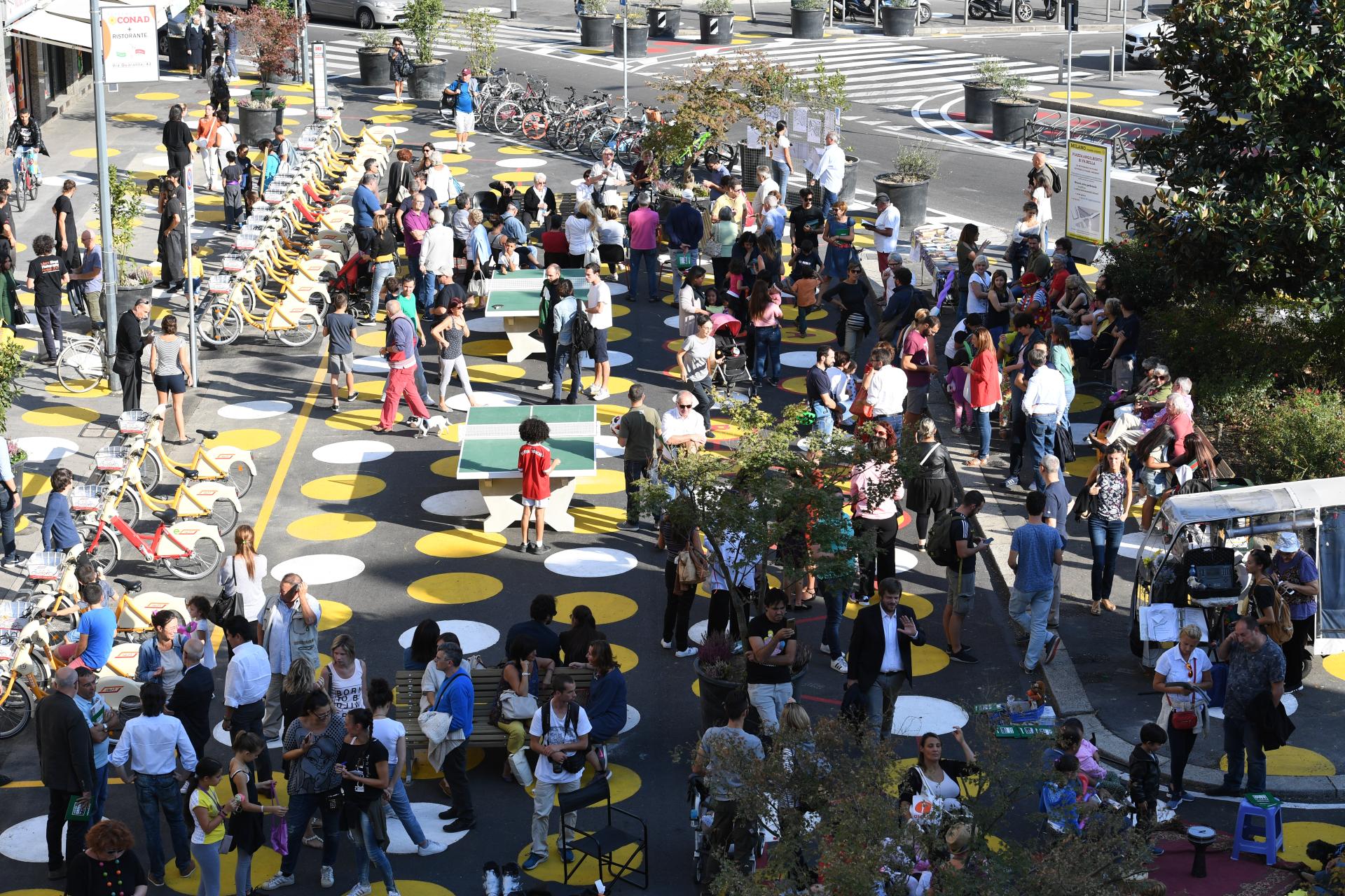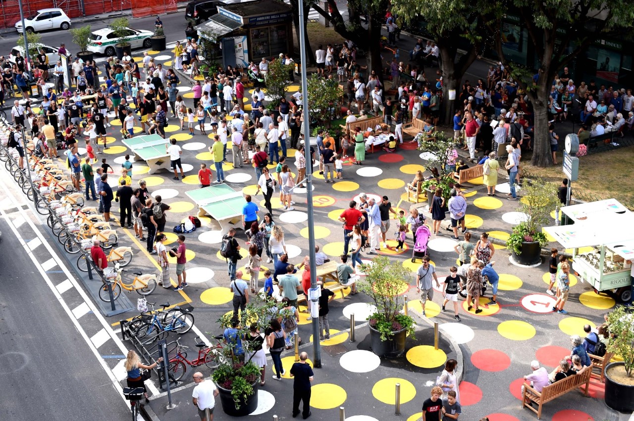 “Piazze Aperte” has aimed at shaping former streets and parking areas of the City of Milan into new public spaces, to be used for social relations and community-based activities. Thanks to this initiative, many reversible, unexpensive and co-designed experimental urban transformations have been activated, leading to many pedestrianization areas, pop-up bike lanes and to new places of social interaction, vitality, and gatherings, bringing urban spaces back into public life.