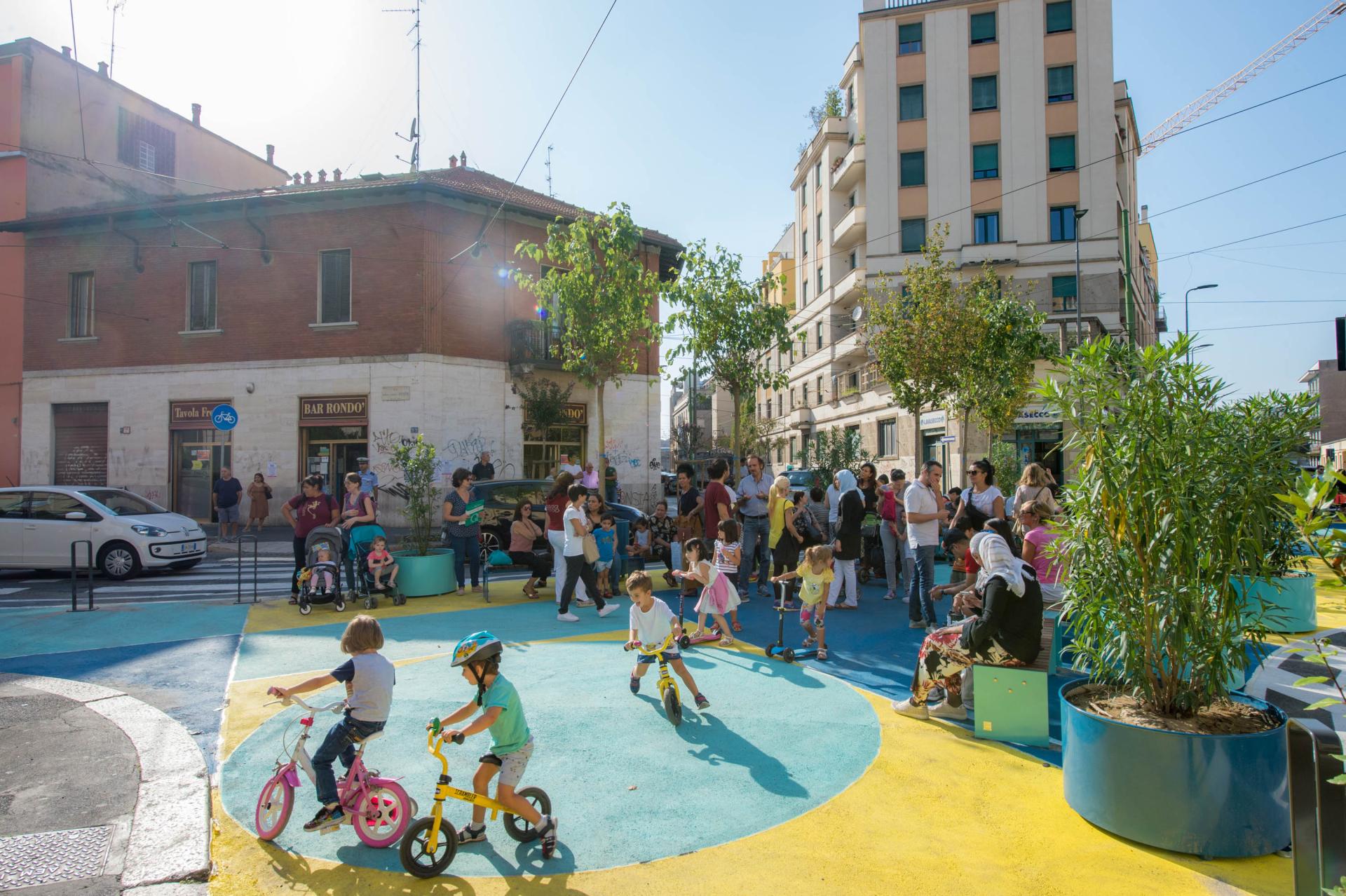 Piazze Aperte is a program of the City of Milan, developed by Agenzia Mobilità Ambiente Territorio (AMAT), partnered up with Bloomberg Associates, the National Association of City Transportation Official (NACTO) and the Global Designing Cities Initiative. The program focuses on urban regeneration and sustainable mobility, key objectives of the Territory Governance Plan for Milan 2030 (PGT Milano 2030) and the Sustainable Urban Mobility Plan (PUMS).