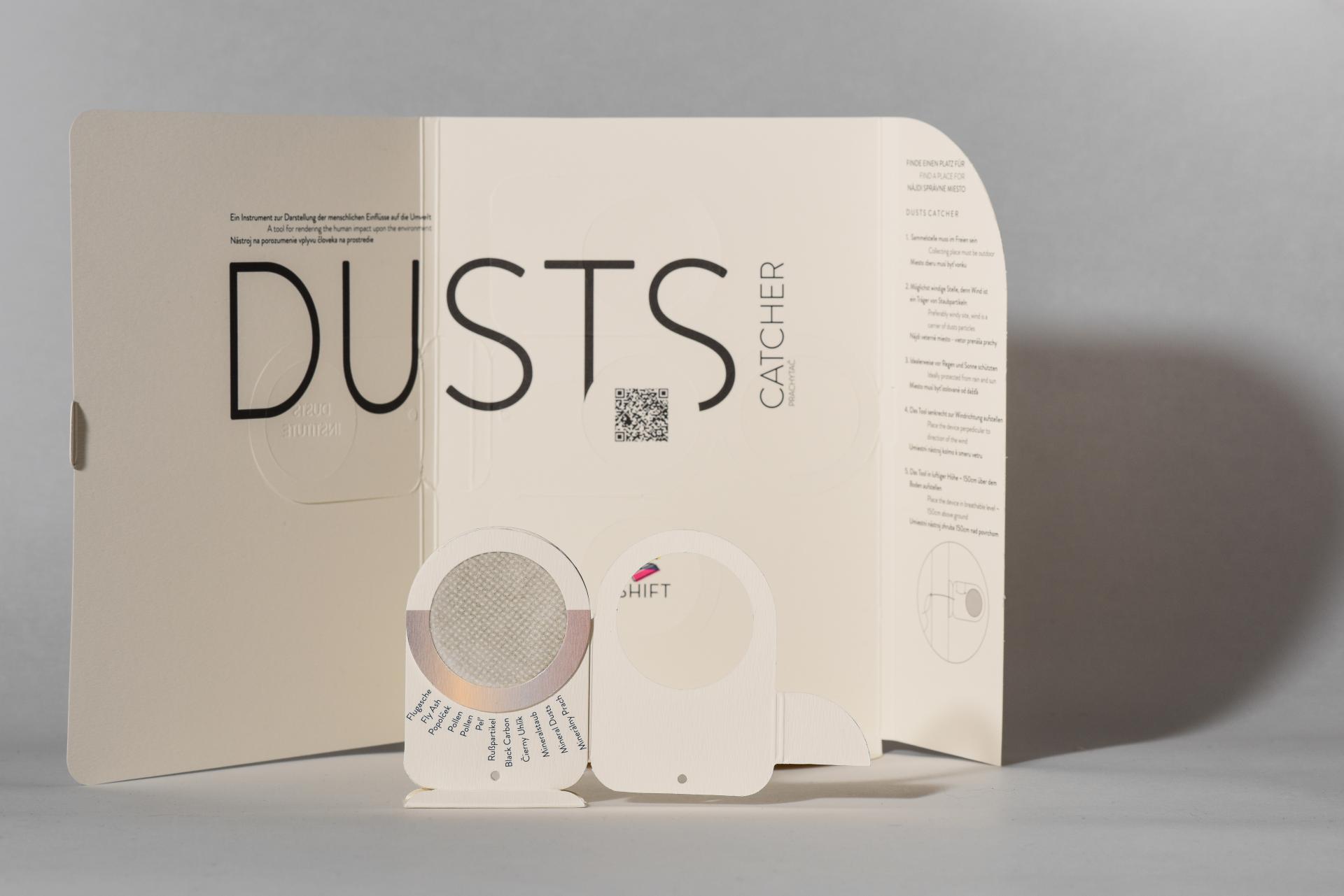 The design of Dusts Catchers KIT was guided by a principle of augmentation of air pollution. The ultimate goal was to design a tool, that would bring this unwanted matter, usually in the periphery of our attention, back to contemporary discussion that would facilitate challenges of climate awareness that we must face nowadays. It means, that Dusts Catchers KIT is able to transform an ignored, rejected matter (air pollution) into a aesthetic object by augmenting our senses. This method has the ability to inform communities about the quality of the air they breathe. Decontruction and materialisation of data were one of the key principles during the design process. This project is a pioneer in re-defining on how aesthetics and quality of experience could reach far beyond functionality; Dusts Catchers KIT is a tool that raise awareness about human impact upon the environment by proposing a visual and tactile experience of otherwise invisible by-product of our lifestyle - airborne dusts.
