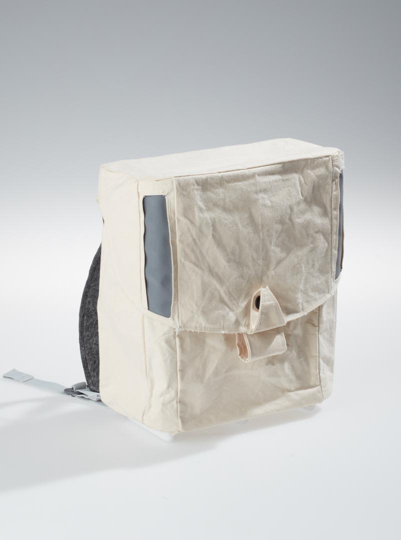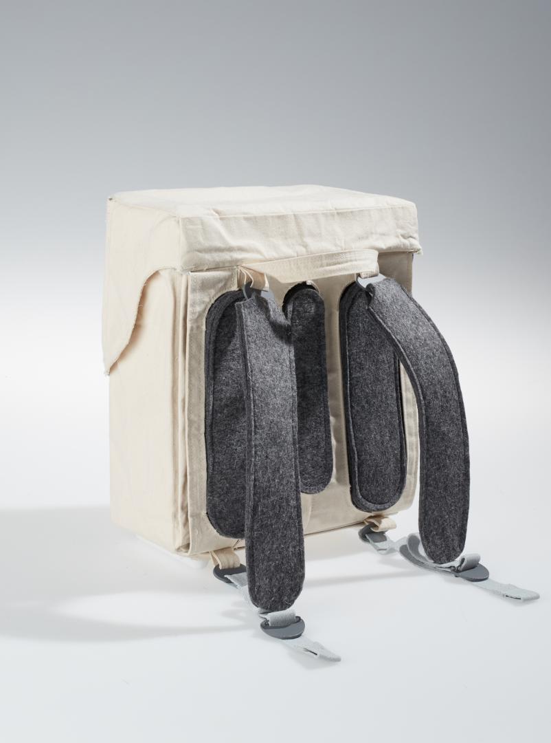 The disassembled product can be send flat packed to the costumer. This fact reduces costs and rises capacities compared to conventional school bags.