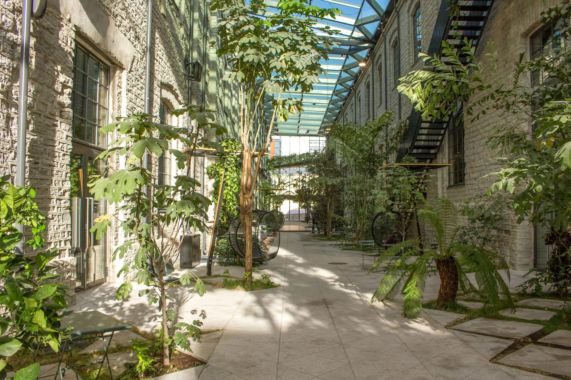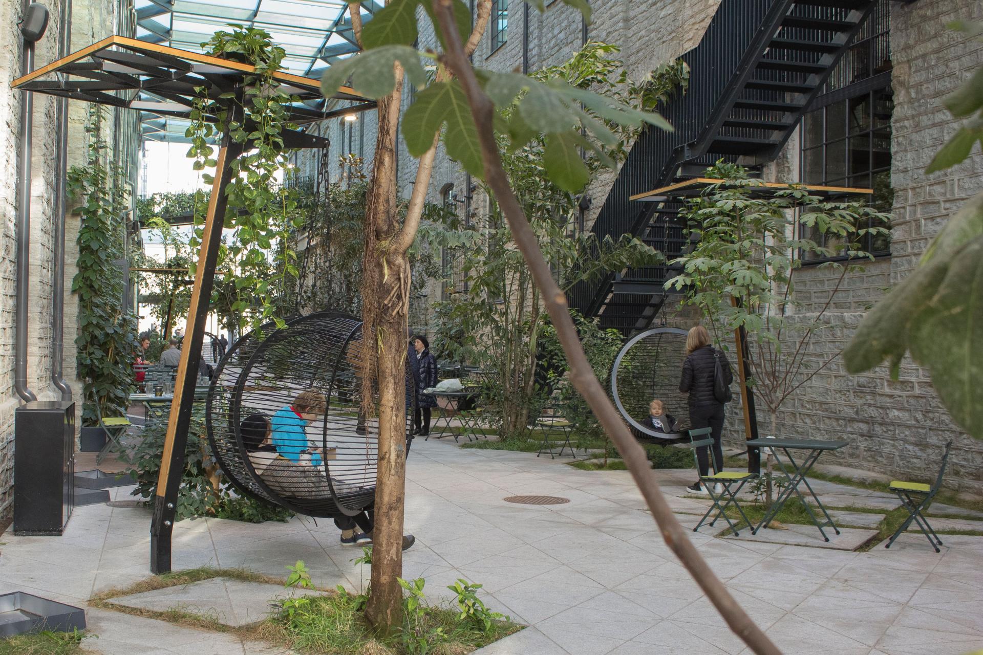 Fahle Gallery Street is the heart of the urban space of Fahle Park, created in the area of a historic paper mill. The landscape for the gallery is unique indoor street in Estonia and in Nordic countries with year-round heating, based on an unusual concept that creates a feeling of nature breaking into the urban space. Glass-roofed street hides cafés and a terraces, water features with fish and exotic landscaping, and is a real gem in the middle of the business district.