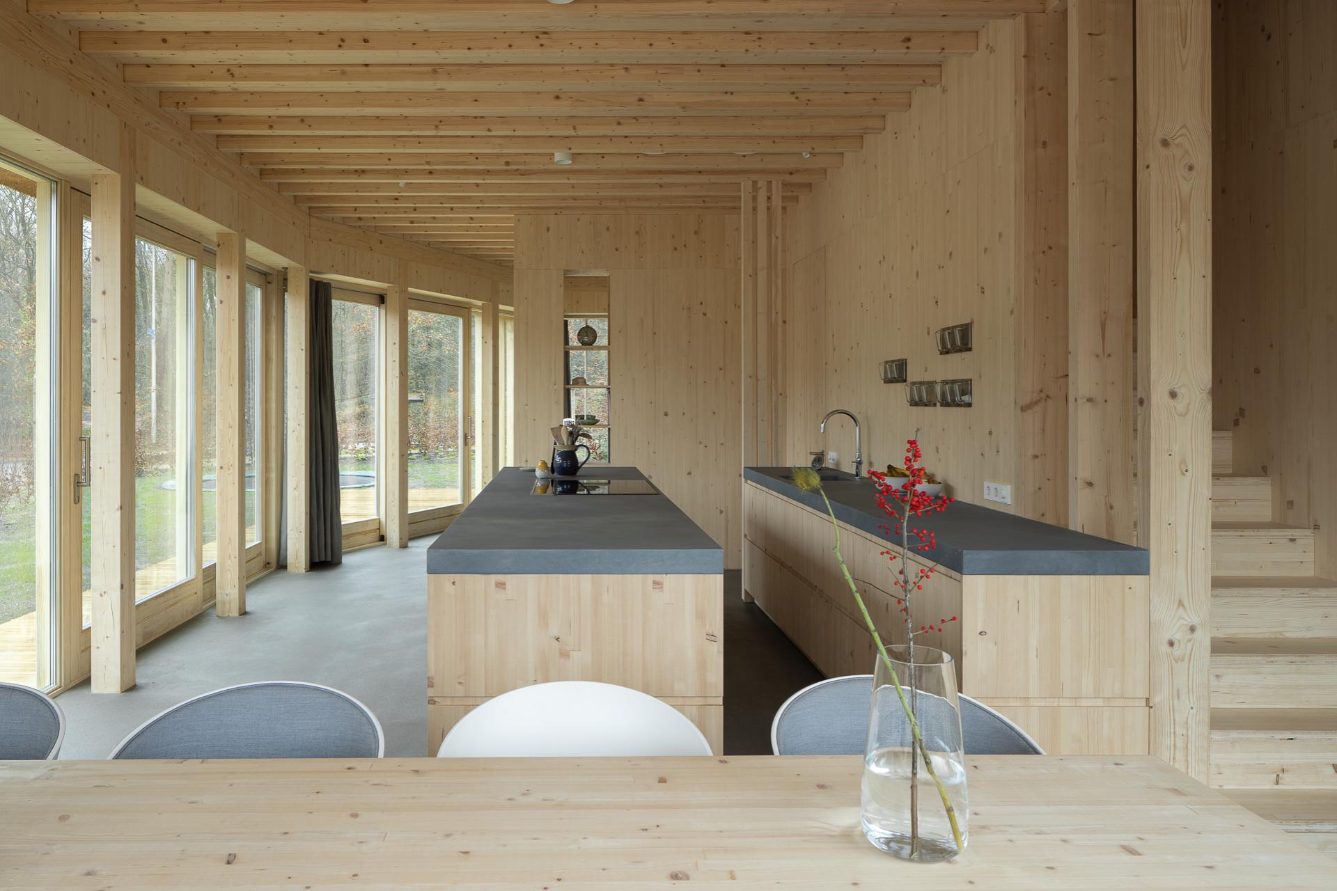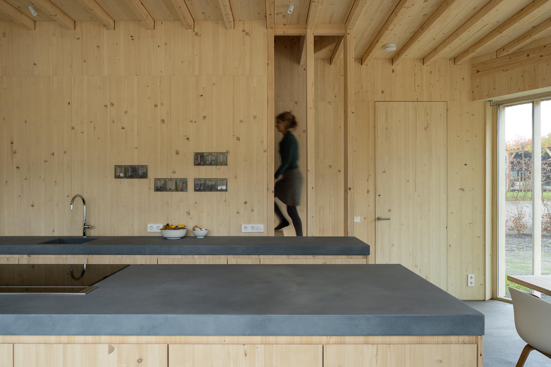 As architects we consider it our task to handle our world with care. In every project we think carefully about origin and future, about demand and use, before and after, building and demolishing. The connection with mother earth is an important topic for us. We humans seem to want to conquer her, to shape her according to our own laws. But shouldn’t it be the other way around? Shouldn’t we love her and act in respect with her laws. Learn to live with the earth instead of against it? In that respect it is important to experience the vulnerability of our earth. We should see, experience, and accept earths vulnerability in order to maintain the quality of life on our planet. Architecture can have an exemplary role in showing this vulnerability. During the design of the Residential House Lichtenberg, we took up this challenge. Our dream came true to build with this awareness in mind. The house is materialised with a reed façade and accoya wood. The complete interior is cladded in pinewood including the walls, kitchen, dining table, beds, writing desks and stairs to create an integrated design. In time the natural materials at the inside and outside of the house are allowed to age naturally so that the passing of time can be read by the house. In this way we humans can reflect on the natural phenomena of the earth. We realised a biobased and energy-neutral home in a low-tech way by using natural materials and high thermal insulation values. This results in a home in which the residents can live comfortably and pleasantly!