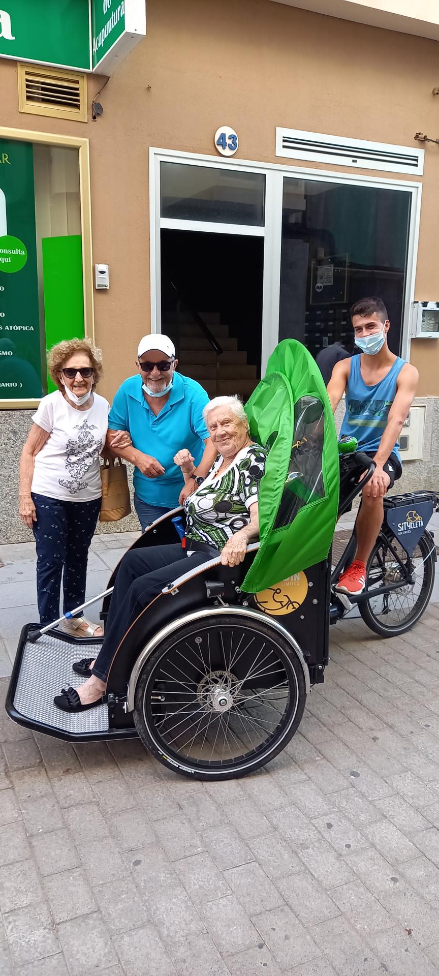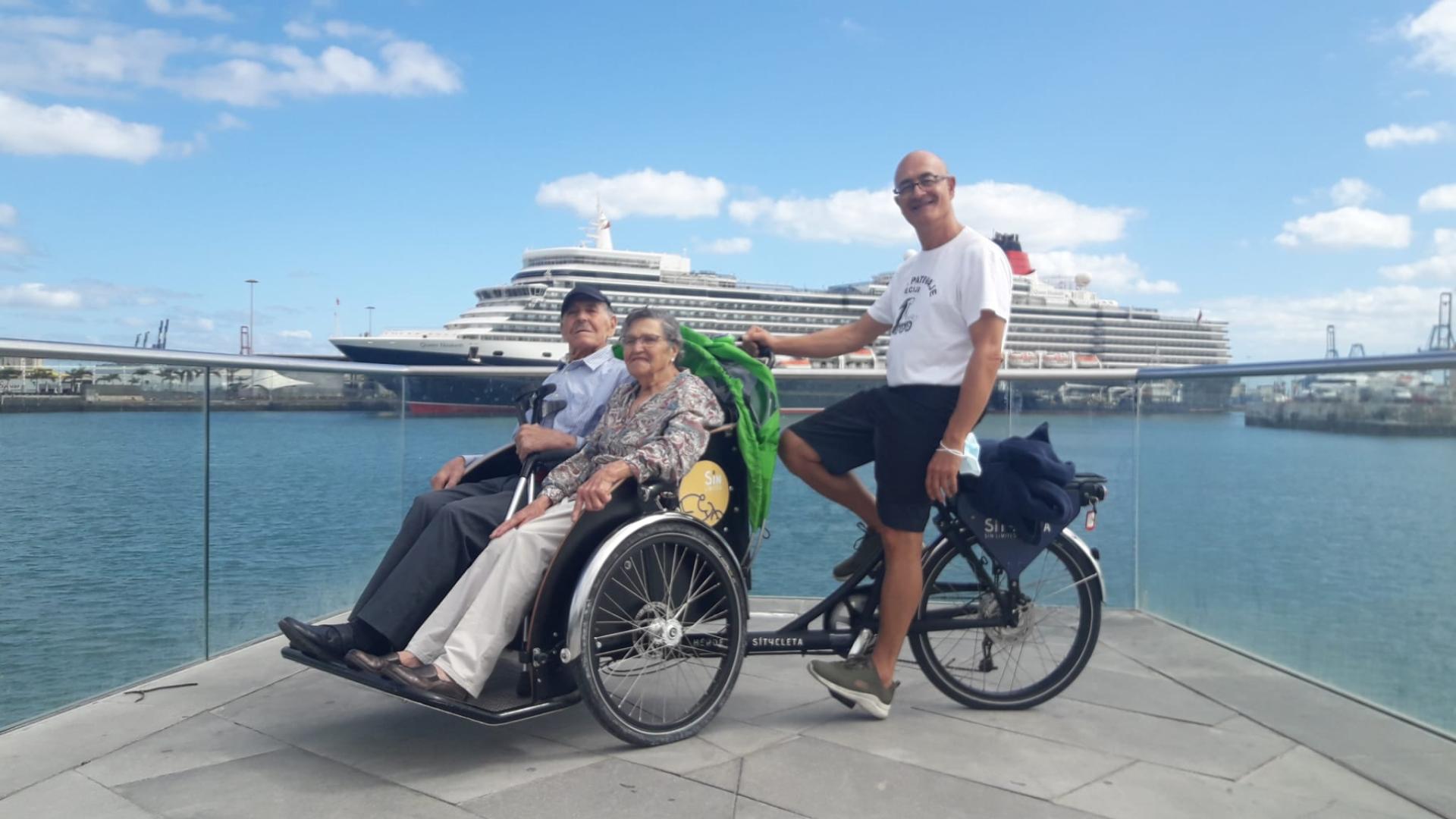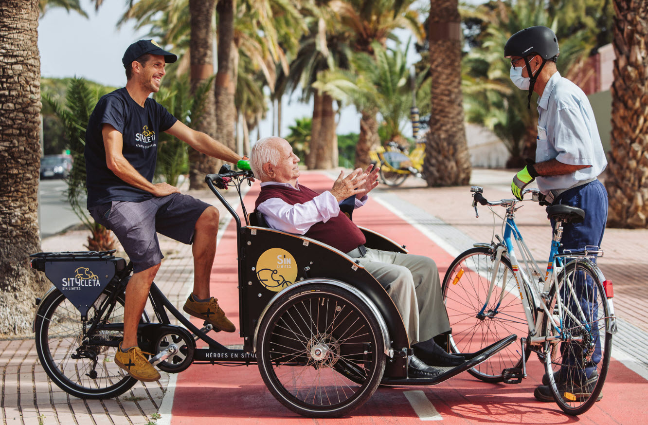Sítycleta Sin Límites (Sítycleta Without Limits) is a volunteering service of tricycle rides that is aimed at the elderly and people with reduced mobility in the city of Las Palmas de Gran Canaria. This initiative was launched in June 2021 thanks to the partnership between SAGULPA (Municipal Parking Society of Las Palmas de Gran Canaria) and the non-profit making association Mejor en Bici (Better by Bike). The project is inspired by the "Cycling Without Age" program, that emerged in Copenhagen in 2012 aiming to give elderly or dependent people the opportunity to ride an adapted tricycle. This initiative is being carried out in more than 2700 locations in 52 countries around the world, being example of Spanish city Barcelona among others. The tricycle rides give people the freedom to explore the city, its highlights, places from childhood and youth. During these rides, new relationships are generated between rider and passenger. In this way, bridges between generations are built, strengthening trust and respect, making a fairer and more caring society. The volunteers involved in this project are trained in the safe driving of the tricycle, in the philosophy of the project and the good treatment with the passengers. They are all offered a meeting place for the rides, to enjoy, reconquer the city, to break with the unwanted loneliness, lack of empathy and justice suffered by the elderly and people in situations of vulnerability due to mobility difficulties, an illness, psychic degenerative diseases, genetic disorders, at risk of exclusion, regardless of their age. The tricycle used for the rides is electric and the front part of it consists of a seat structure that fits two people. The estimated ride time is about two hours and there are three routes through the city along cycle lanes, pedestrian zones and zones 30. The project is fully aligned with the SDGs established by the international community in the 2030 Agenda, sepecifically SDGs 3, 10 and 11.