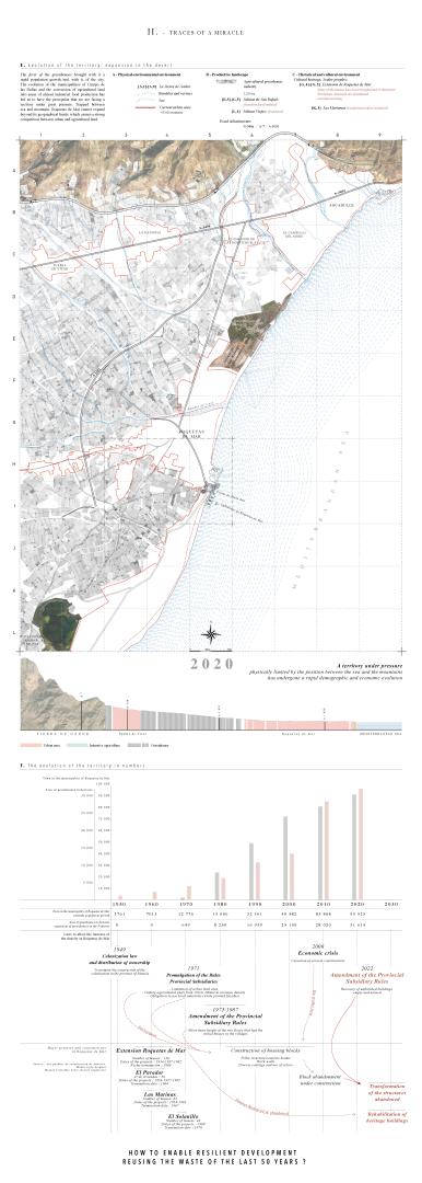 Today, the patrimonial constructions had been abandoned, the new buildings are no longer based on local resources (material, culture, knowledge, social) and the wastes from greenhouses are flooding in the city and contaminate the souls.