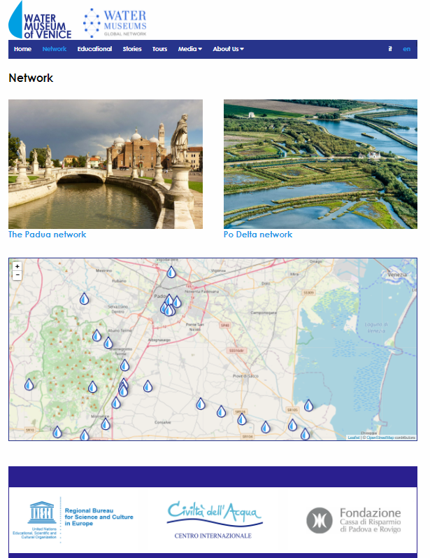 The current pilot project of the Water Museum of Venice includes only a network of water-based places from Padua and Rovigo. The idea is to enlarge it by adding new Italian partners located in the northeast of the country to create an interregional and participatory ecomuseum to support the local cultural and natural sites. In the next future, this model can be even more developed involving Italian and European places such as those within the "Water Museums Global Network" (WAMU-NET).