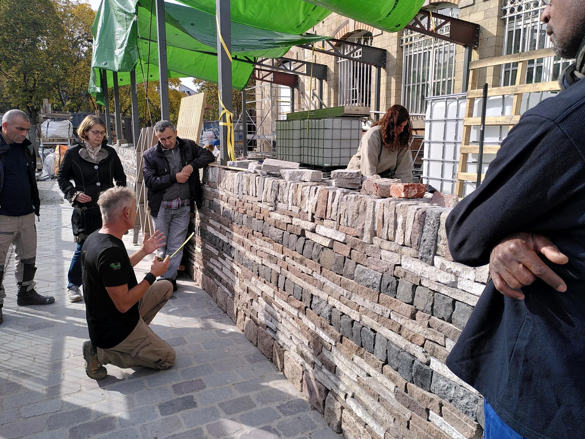 All along the work, the workers were valued in their action. It was chosen to opt for a non-opaque site barrier, making the site visible and inviting the curious to look through. For instance, the creation of the parvis and the dry stone walls for the terrace were visible to many passers-by and walkers along the dock. Information was given orally to all the many curious people, a poster and a mural explained to the inhabitants the objectives, the issues and the ecosystem at work on this site.