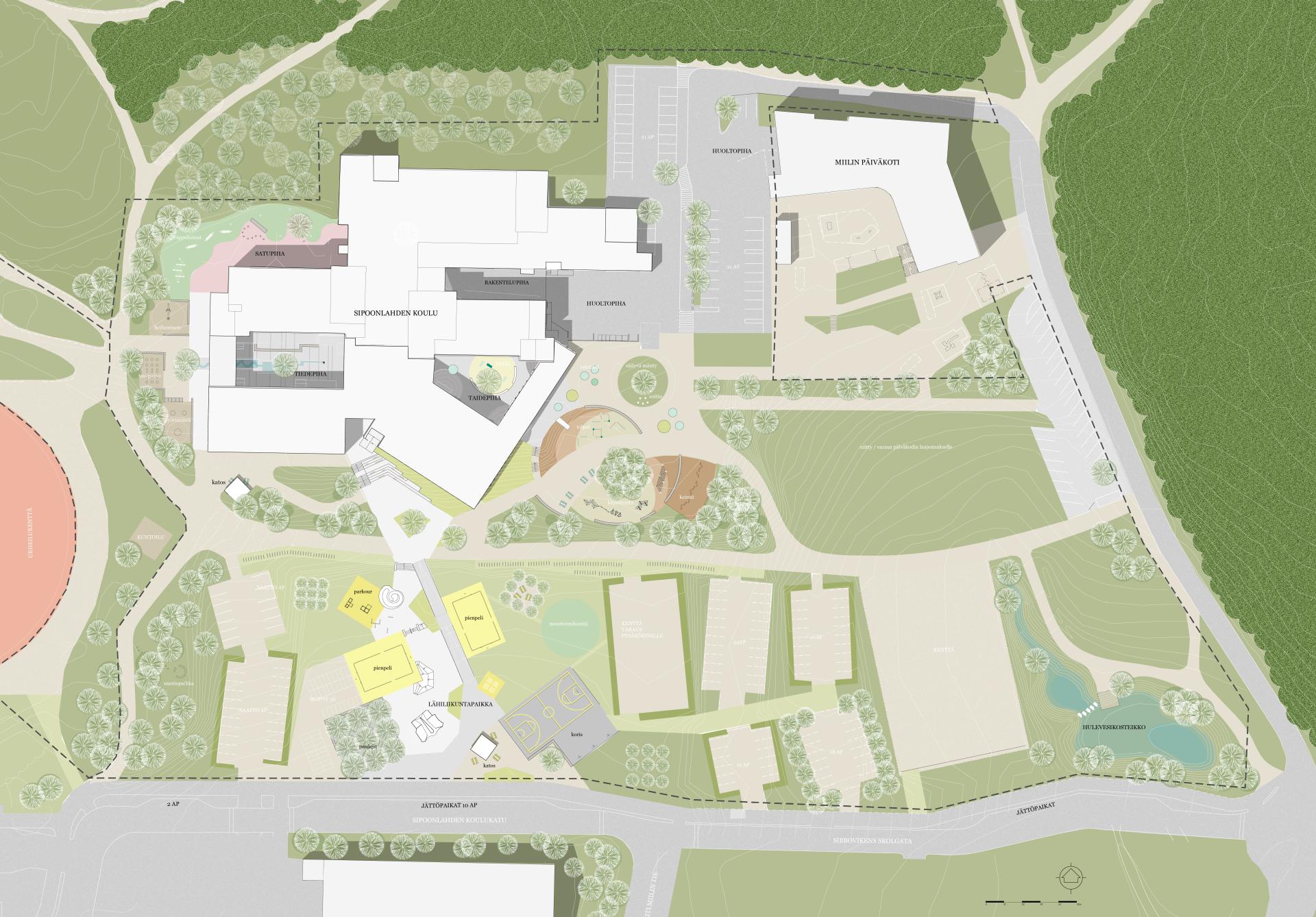 Sipoonlahti school yard was renewed in connection with the school’s expansion project. The yard area and the new local sports ground has a capacity to serve up to 1200 students as well as residents of the surrounding area. The aim of the design was to create an outdoor space that takes into account the different users of the yard, forms a diverse learning environment, encourages mobility and offers opportunities for nature observation and contact with nature.