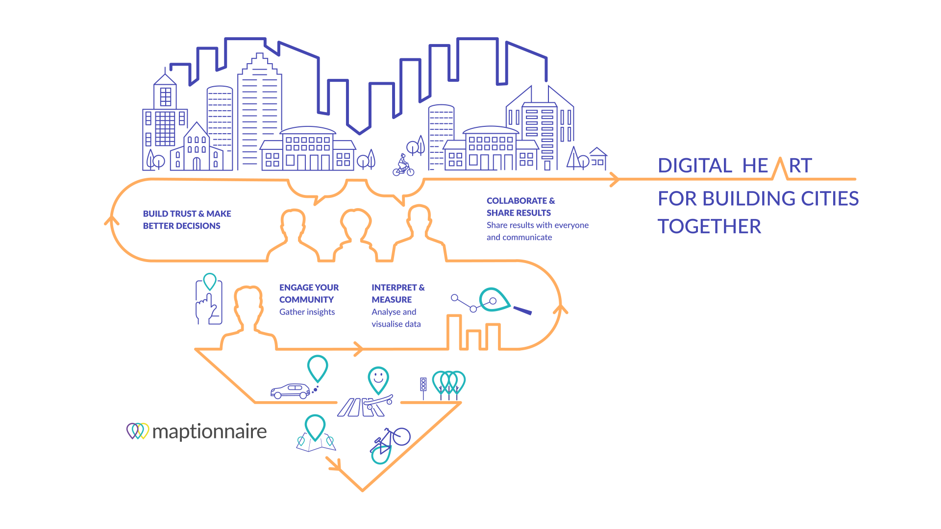 Maptionnaire is a solution for listening to the community and its members. With our service, cities, consultancies and research organizations can achieve a broader and more inclusive reach (compared to “traditional”, face-to-face engagement alone). It also allows for the typically silent minority in e.g. city planning processes to voice out their views and opinions about the plans. By using Maptionnaire, the entire engagement process can be more transparent and promote good governance.