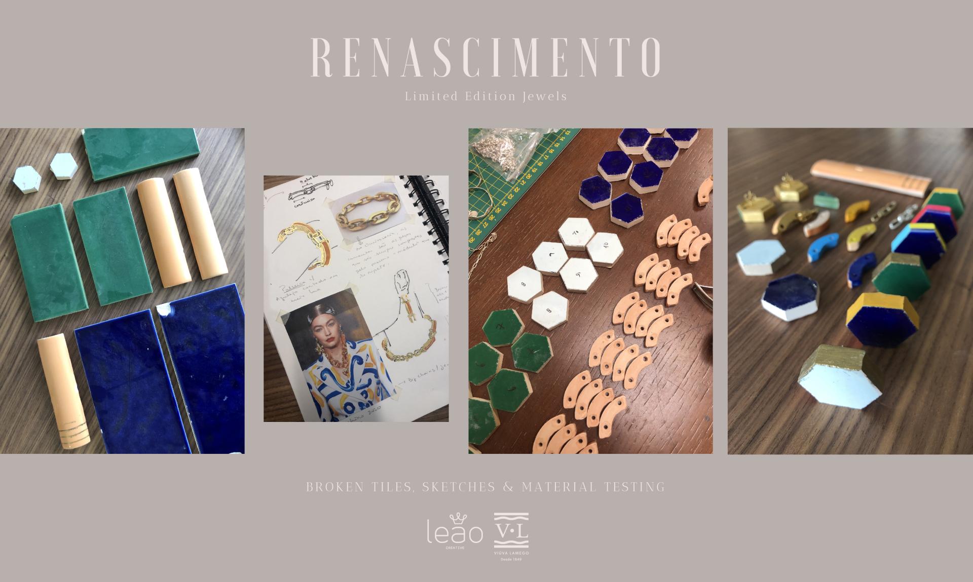 Renascimento is a jewelry collection with an "open concept", made with broken tiles from the century-old Viúva Lamego factory, with the aim of creating a new value chain: