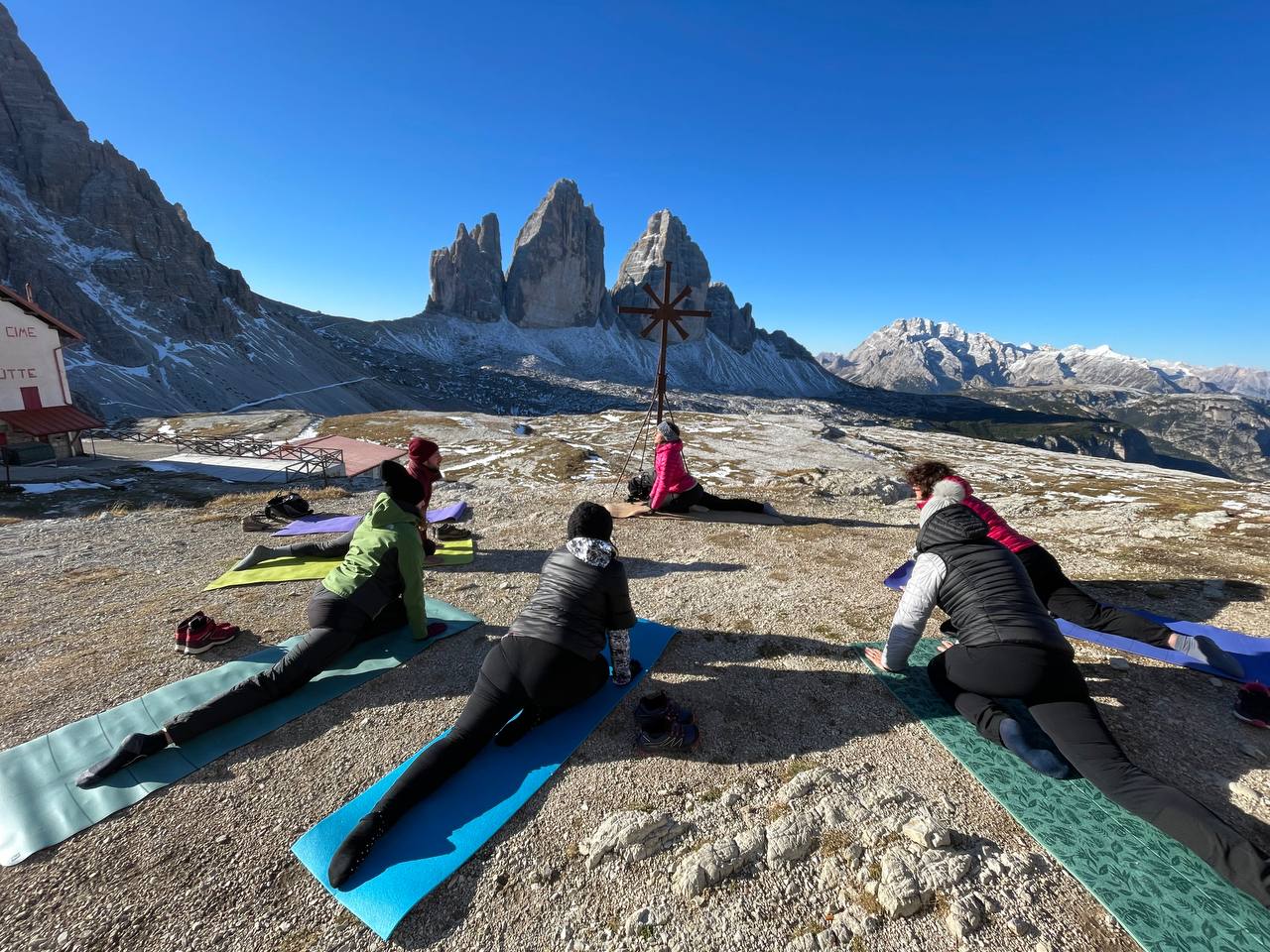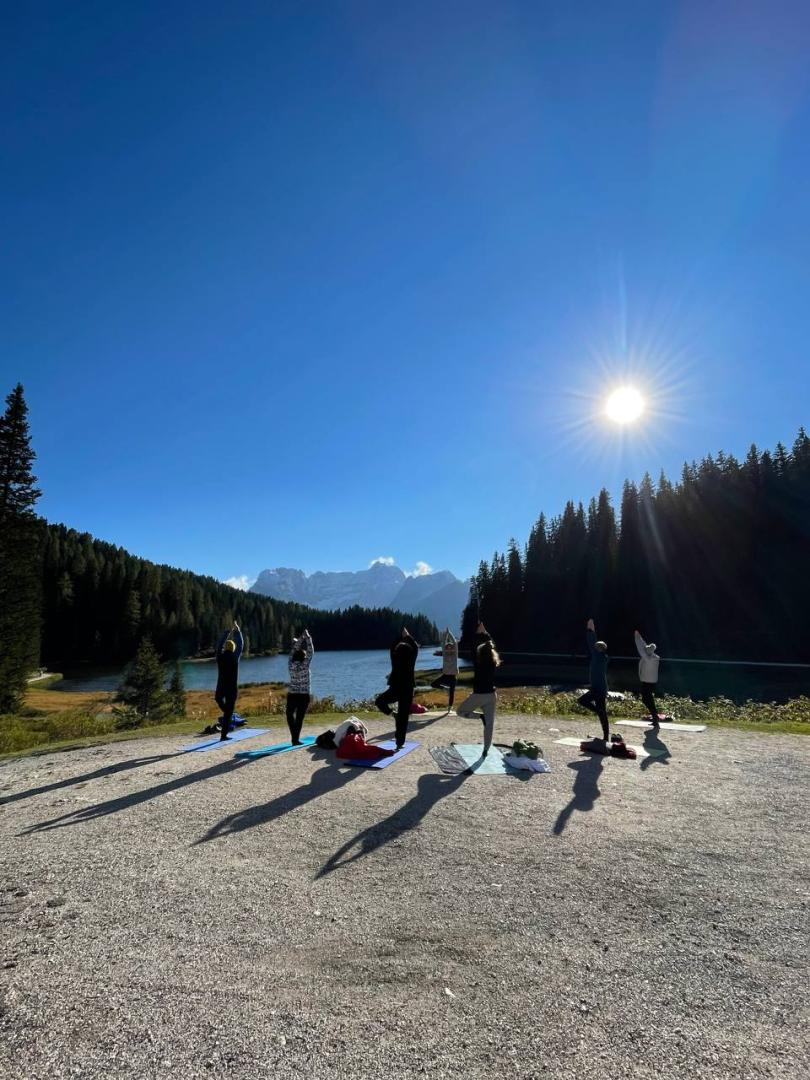 In September 2020 we organized the first yoga retreat in Misurina. The location is famous all over the world, thanks to the lake of the same name, that makes the air so fresh and pure, that the place is thought to be therapeutic for patients with asthma and other respiratory problems, and thanks to the Tre Cime di Lavaredo, the distinctive battlement-like peaks.