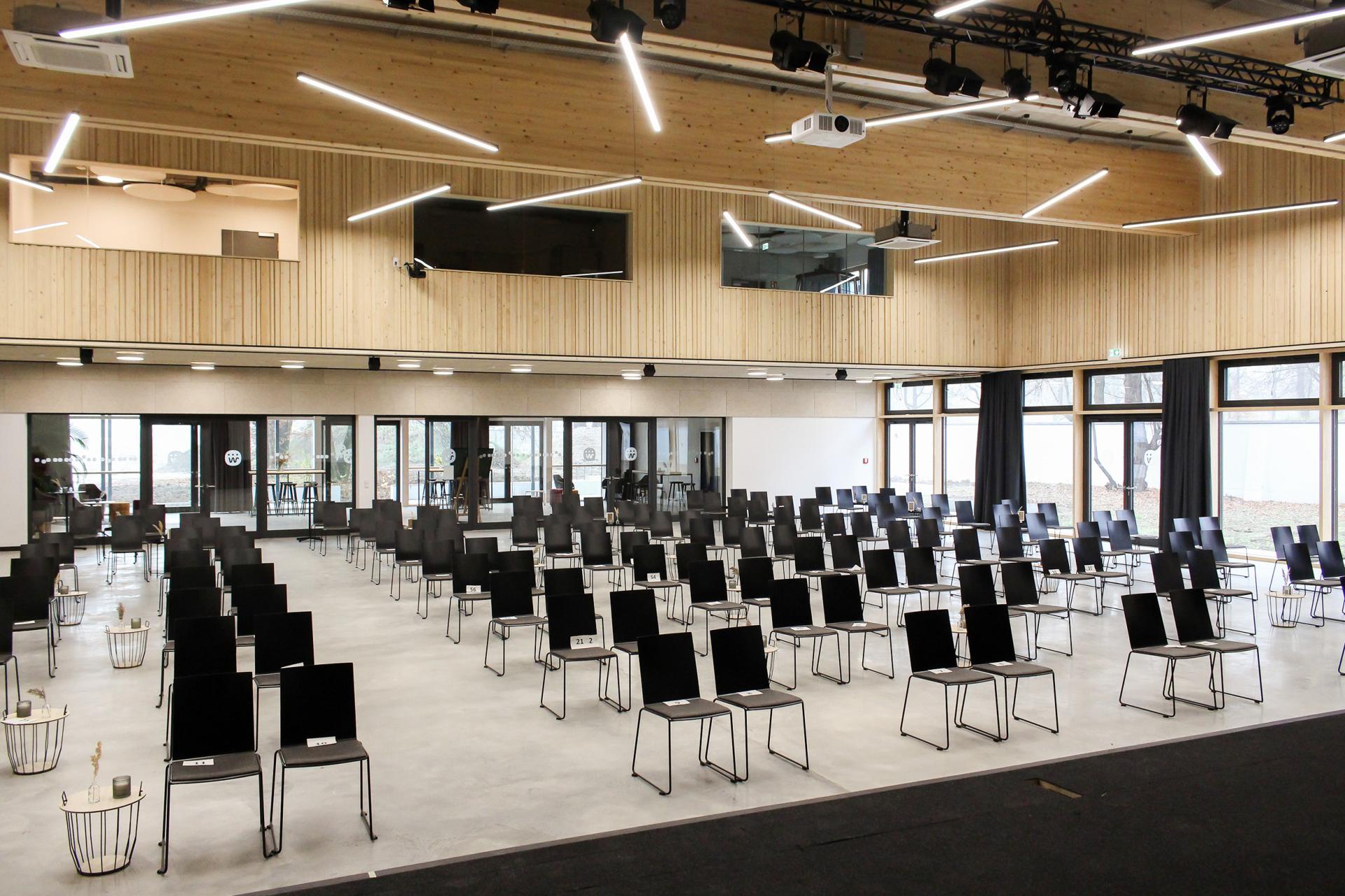 The seminar rooms on the first floor have folding partitions, creating rooms