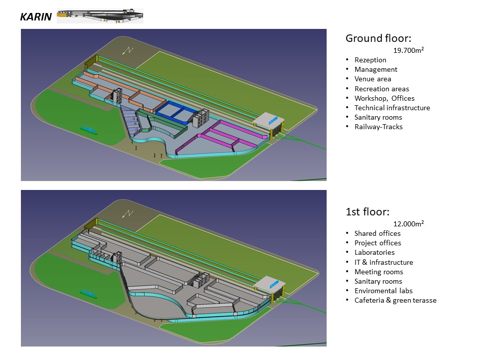 Connected to the railway with its’ own private tracks, it is predestined for research on and development of train-related systems and new products. Yet it is surely not limited on that research. Equipped with workshops, laboratories or just office spaces KARIN is open to any kind of research and development work. It even holds the possibility to reserve part of the building for oneself which gives the opportunity to privately work on revolutionary products.