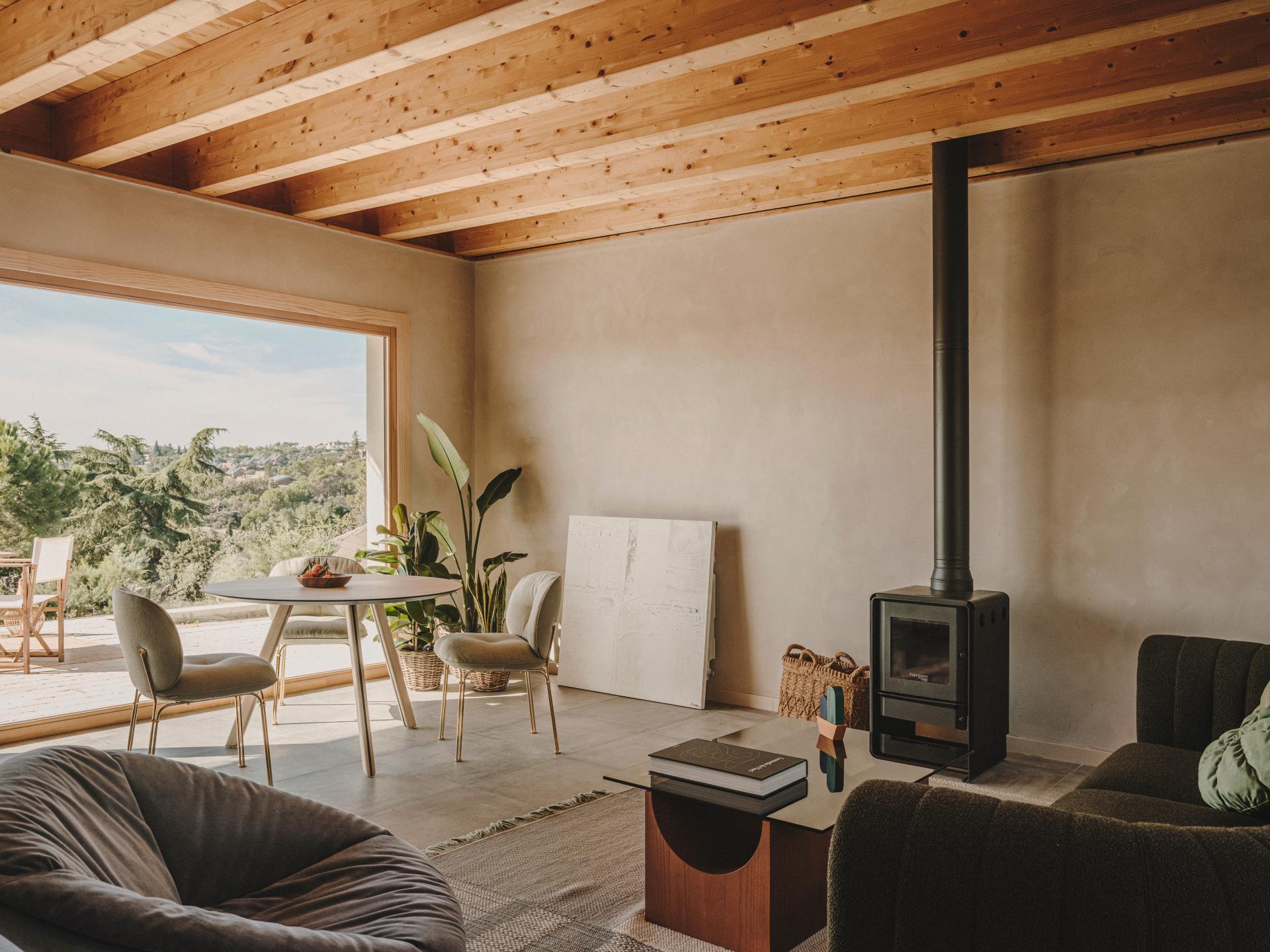 Once the energy demand of the house has been reduced to a minimum, the use of affordable and non-polluting energies is prioritised for the low energy input required. Green energy sources are used, such as connection to the electricity grid and a biomass stove that will be used on the coldest days of the year to heat the daytime areas. Biomass, although not free of CO2 emissions during its combustion process, is considered a zero-emission energy source because the tree has previously absorbed the same amount of CO2 during its growth.