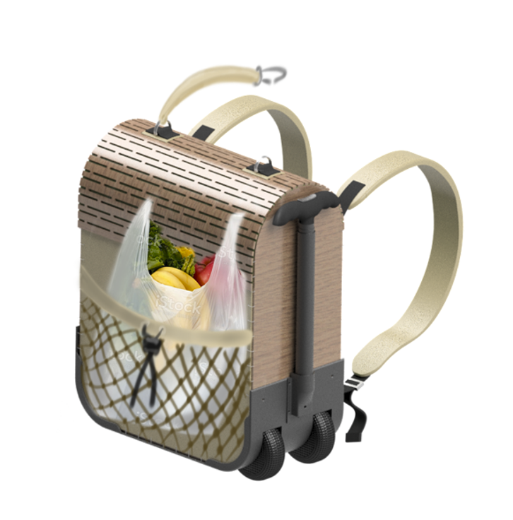 The idea for the design came from my own experience with unbearably heavy backpacks growing up. I am 1.40m tall, so the standardized backpack we got at school reached me to my knees. Reluctantly, I had to start using a rolling backpack to be able to handle the weight. Due to the stigma around rolling backpacks, especially for teens, I hated every second of it. Therefore, I wanted to create what I wished I had then.