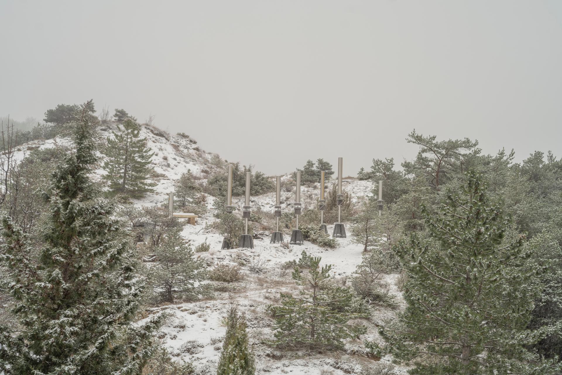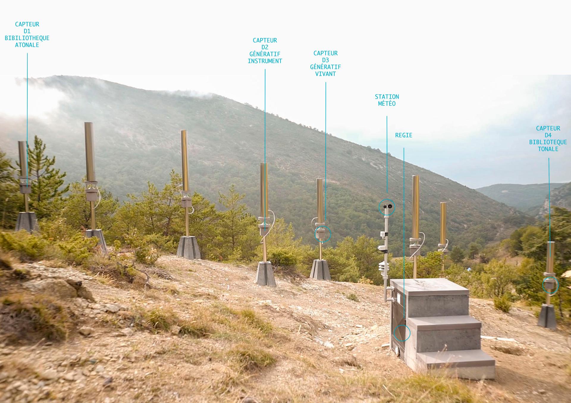The objective of building a permanent instrument on a mountain, led us to integrate the difficulties related to the wide latitude of temperatures, the speed of the winds as well as the strong sunshine in summer. The song of the instrument is based on these different forces. The challenge has been met since the entire installation, launched in November 2020, has gone through two winters and is still fully operational.