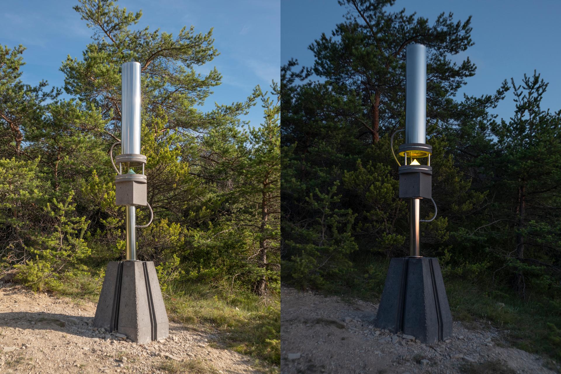 The choice of location implies the use of durable materials, capable of resisting over a long period of time. The extremely resistant lava stones of the central massif, the metals are made of 316L stainless mirror polished in Lyon (diffract the light to avoid a temperature rising and reflect the fauna and flora colors). The choice of local production (regional entrepreneurs, local artists, choice of local materials) meets the requirement for a more sustainable development of the artistic experimentation work.