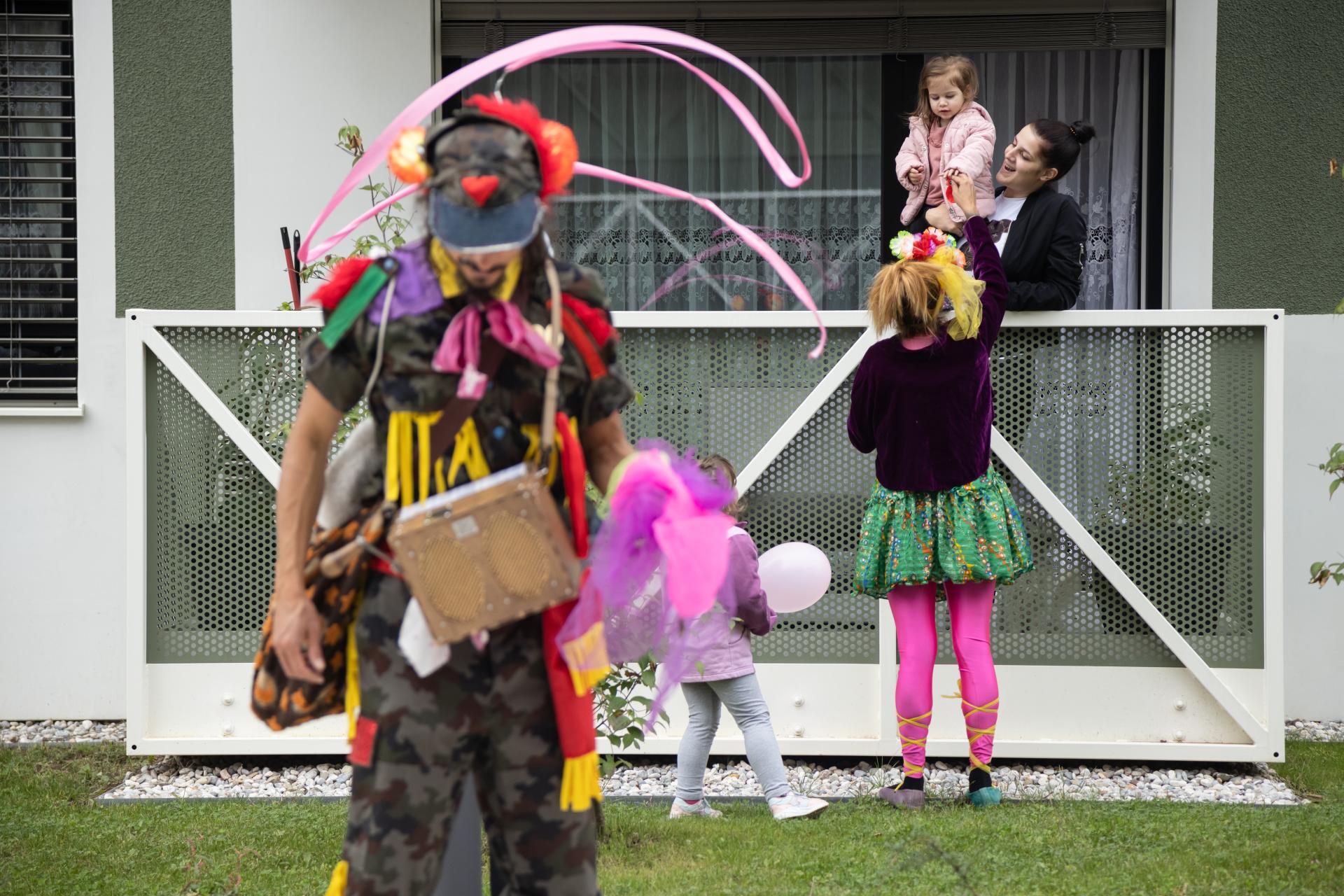 In the neighbourhood we use urban scenography interventions to change the common grounds into a festive event space. With an artistic street theatre show we open this space and invite people into it. The show addresses the feelings, hardships and concrete living situations that residents of new housing estates (may) face due to just having started to live in a different environment and among strangers. This is done in an understandable, entertaining, non-accusing and non-burdensome way.