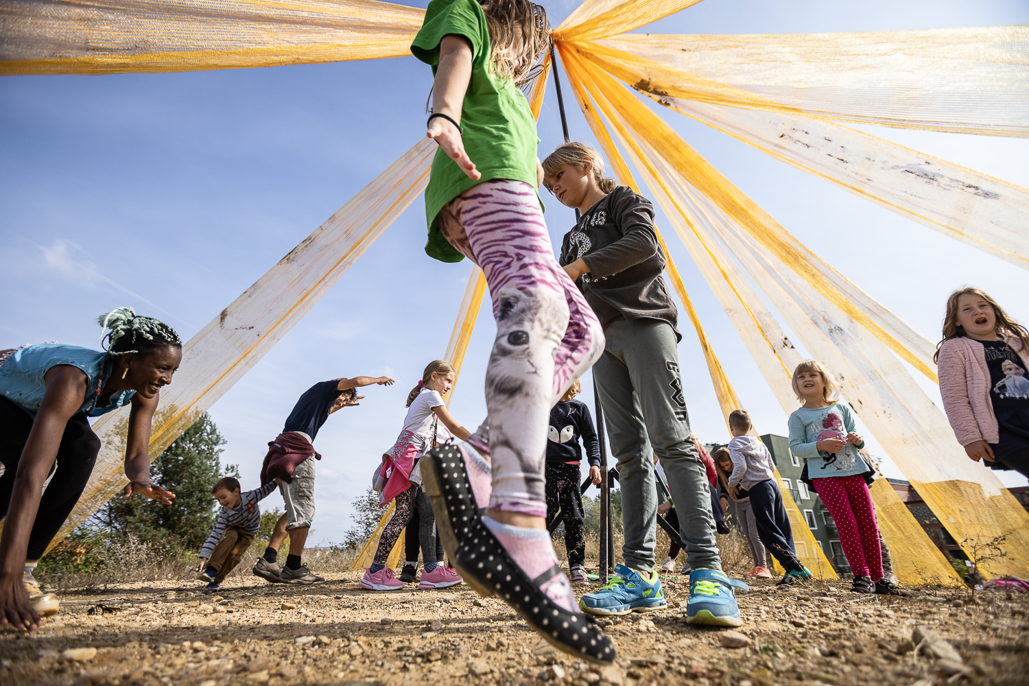 The aim is to use performing arts to help forming bonds between fresh residents of the newly-built neighbourhoods. On their communal spaces we organize a 12-day cultural and social program for residents to meet with contemporary performative street arts in the home environment, which they rarely or never met before.