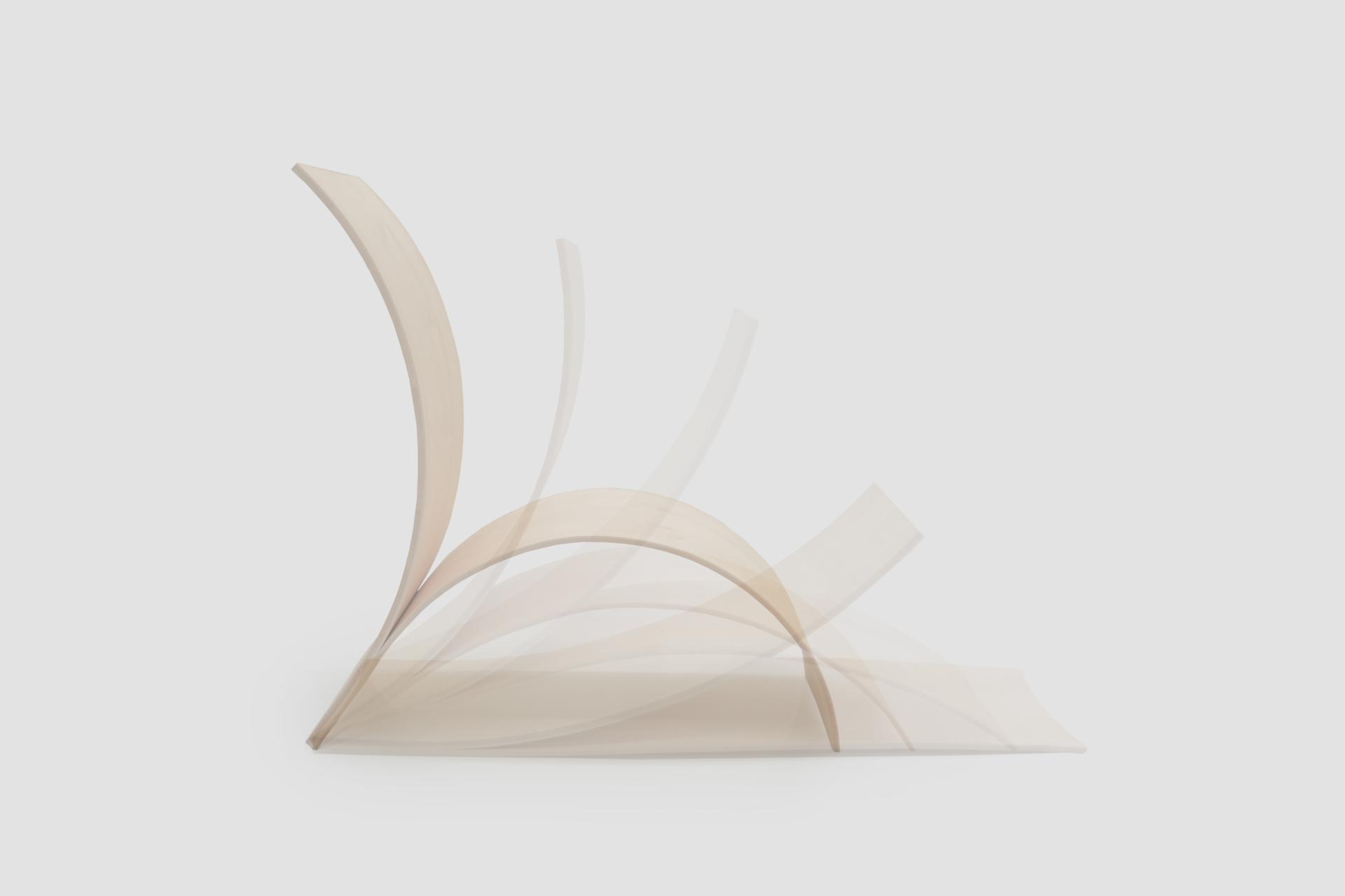 The magic behind the self-shaping motion lies purely in the natural build-up of the wood cells, which swell or shrink anisotropically in reaction to the moisture in the air that surrounds them. This property is well known to the woodworker and usually seen as a major drawback of wood because when unchecked in the drying process it can result in large uncontrolled deformations. However, when these forces are carefully understood, they can serve as a purely passive generator of form, replacing heavy machines or formwork. In a multilayered composition the shrinkage of the wood can be used to physically code a shape into the furniture and thus precisely predict the resulting curvature.