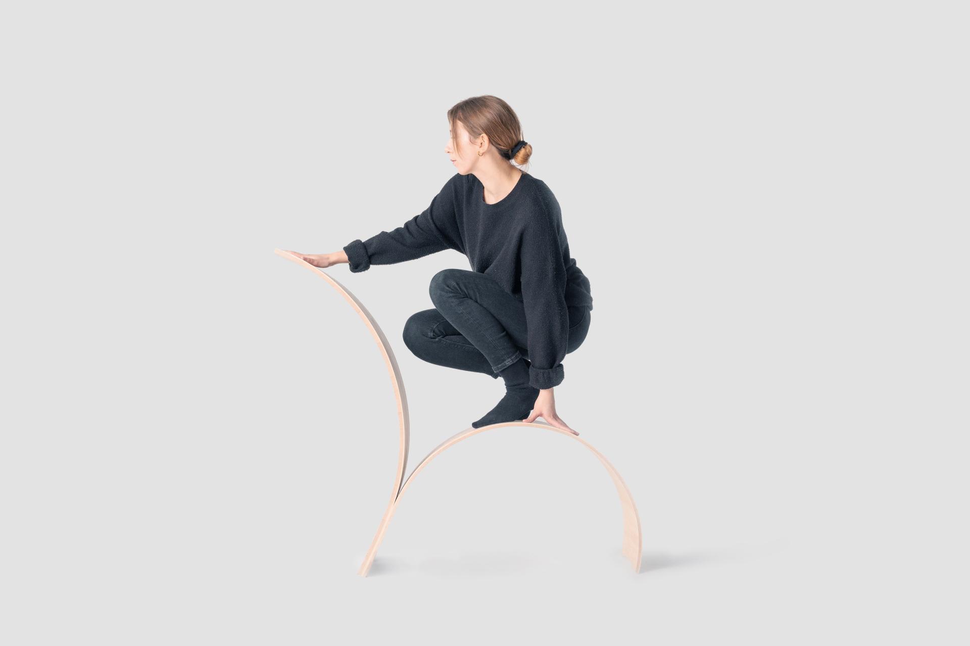 In recent years we have witnessed the furniture markets flooded with cheap, near single use, furniture often made from particle board and coated with plastic. Apart from the fact that these kinds of wood and adhesive composites are almost impossible to separate and therefore very difficult to recycle, they also have a very short expected lifetime. In terms of haptics and aesthetics, they look and feel unnatural and unappealing. Often they even display an inauthentic wood surface texture on top of other materials. With HygroShape we aim to satisfy user needs for an honest and clean design, made from truly natural materials.. The design of each piece emerges from the unique material behaviors and structuring from which they are made. The design language is sleek curvature in thin surfaces. From some angles the structure of the chair disappears nearly entirely while others reveal each piece’s daring expression of structural boundaries. Inherently the self-shaping leads to an honest and clean design, absent of standard angled connections or mechanical hardware. The result is a stable yet compliant structure for a dynamic interaction with the body.
