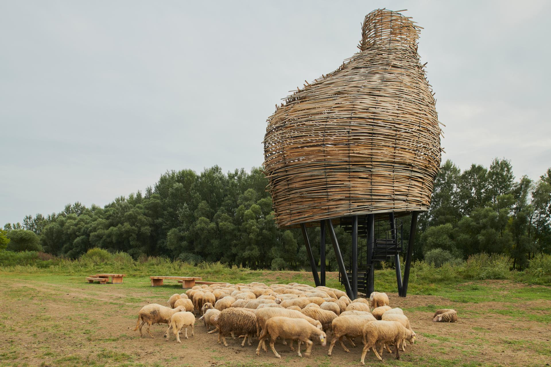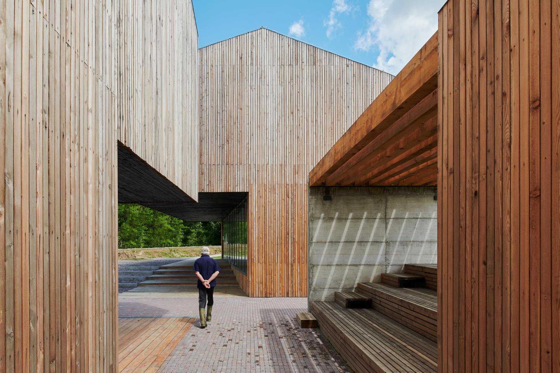 The new nexus of rural life, framed by the visitor centre’s two buildings, exceeds its primary function and becomes a new point of gathering for the community. Its program, as well as the exhbition’s narrative, was developed in an interdisciplinary and collaborative process lasting several years and involving local governance, the nature park employees, park rangers, designers, artists, biologists, craftsmen, programmers, citizens. The stories told in the exhibition and exposed through the observatories have evolved from a deep local understanding of both the species inhabiting the wetlands as well as centuries of reverent symbiosis.