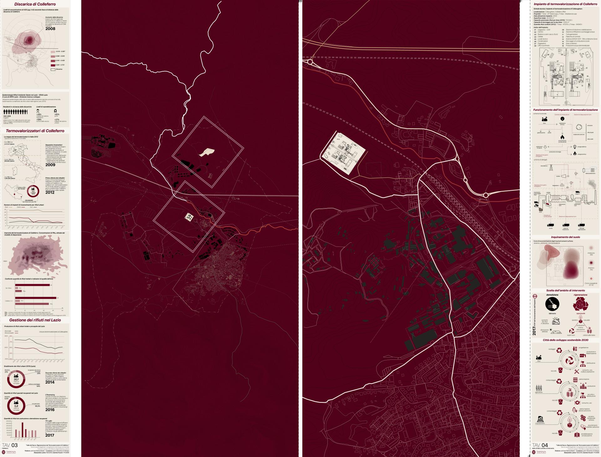 The design idea is therefore to create a network of regenerated industrial centers, which can respond to the critical issues of the territory, of which the Colleferro waste-to-energy area (30000 sqm) constitutes the central core. The Colleferro industrial complex become a “City of Education and Sustainable Development 2030”, with various public and private functions related to three major issues, born in response to the three major critical issues in the area (waste, agriculture and pollution):
