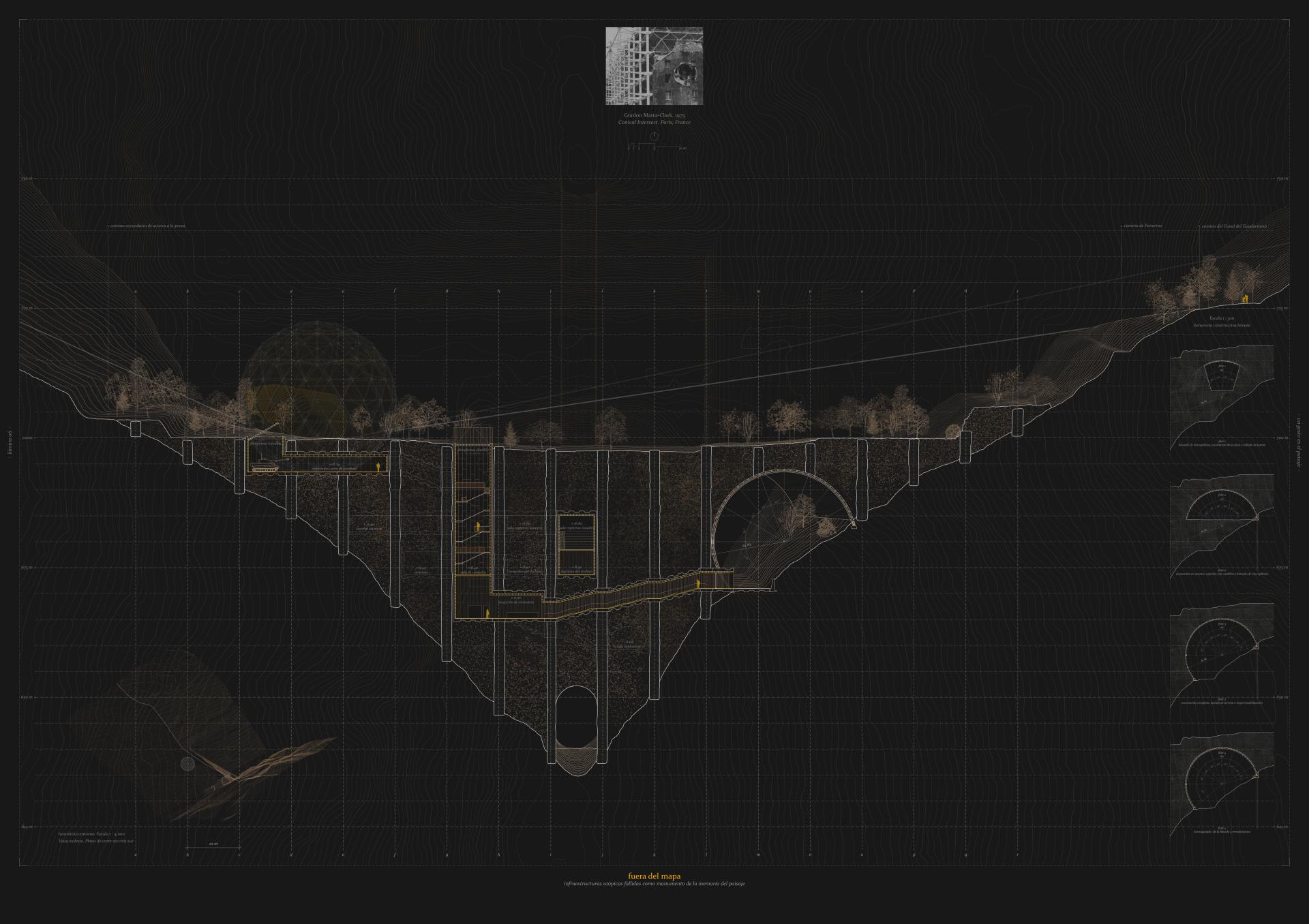 It could be said that the project proposes a triple dimension that addresses from the architectural point of view: a cultural dimension, based on the value of the landscape and infrastructure when it acquires the condition of ruin-monument; a social dimension, which seeks to recover the sense of identity and make visible a legacy that belongs to us; and a third dimension based on sustainability criteria, which proposes the convergence of the two previous ones to make them compatible with a sustainable development committed to the environment.