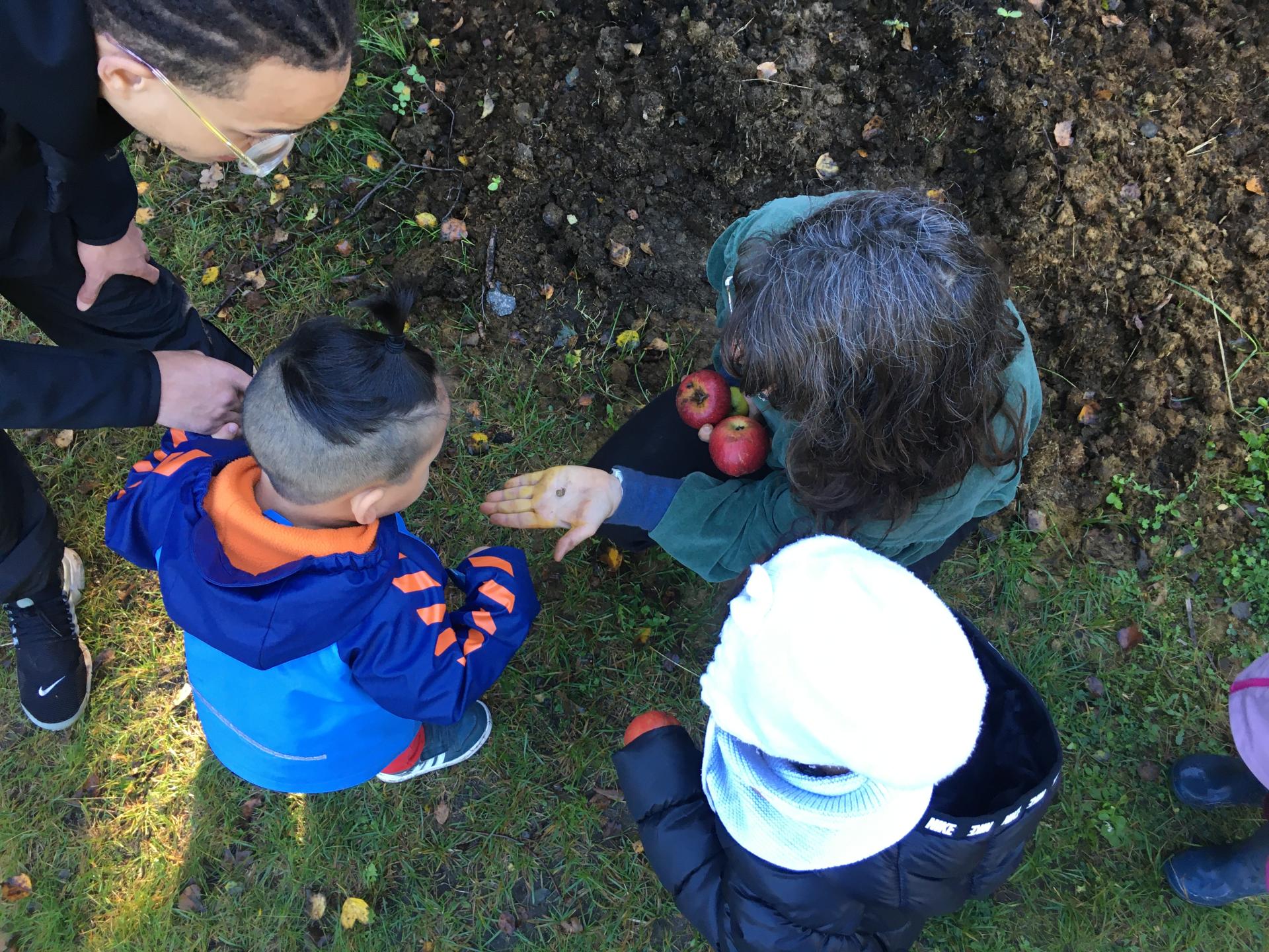 Discovering a garden and its inhabitants, exploring ecosystems, apple trees, insects, collecting leaves, fruits, branches, seed, playing, reading childrens' books from our library in a 10.000 sqm garden… all of our activities contributed to (re)connecting the people of the neighbourhood with nature in different ways. Against the background of a future development of the site we built inclusive access to the former school garden to let people of the neighbourhood enjoy the beauty of spending time there. With a range of educational institutions we organised and conducted workshops that focussed building an understanding of the multifunctional opportunities a garden provides.