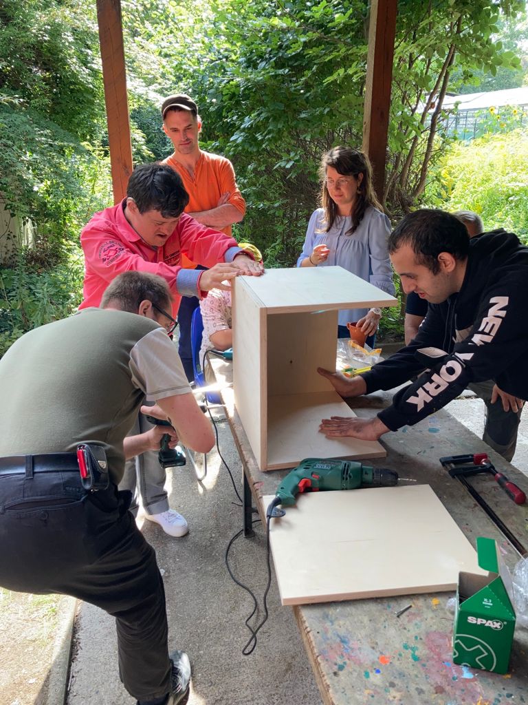 Our main focus was bringing people of the neighbourhood into a regular and close contact with urban nature to address the value and the potential of such a third green space in a mainly concrete environment. Our project was being designed, developed and implemented together with artists with disabilities (Thikwa Werkstatt für Theater und Kunst), who partly do live in the nearby area. Collaboration with a group of artists from Thikwa required new working methodologies for a diverse team (creators with and without intellectual disabilities). We investigated the dynamics of design, implementation and evaluation of accessible activities.