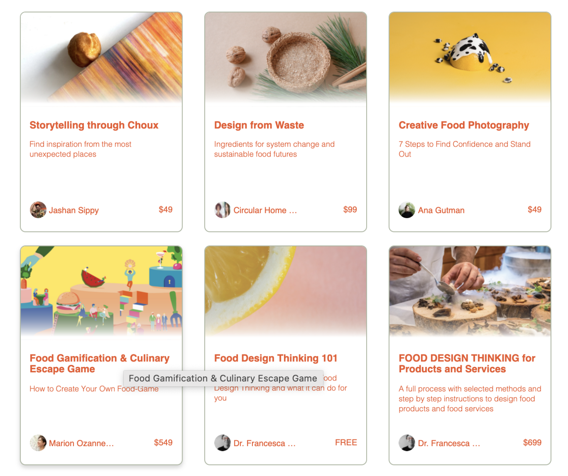 3) Most online schools often focus on content that the market is ready for. Our Summer School focused on people and their own unique content. This is our biggest differentiator. Our goal is to show every corner of the Food Design discipline through the eyes of those who explore it and pioneer it. Moreover, the courses that we have selected all respond to two or more of our pillars: sustainability, creativity, food. These allow us to always be aligned to our values.