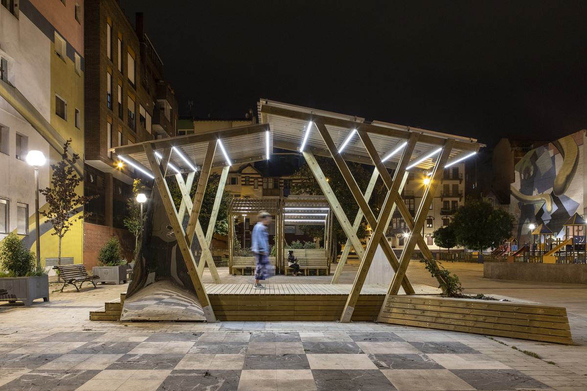 Biotic City addresses Climate Change and Environmental Footprint incorporating systems that close urban cycles of resources. Agroplaza Getafe is composed of 12 Urban Ecological Installations where you can exchange and reuse objects, grow vegetables, or host urban insects. In Agroplaza Kirikiño, solar power provides energy for night lighting, music or charging your mobile telephone. Agroplaza Venice produces energy through the movement of a swing seat and collects it for later use as night light and device charger. In Torrelavega, the park is transformed into a space for environmental education as an important piece of the city’s green infrastructure. It is designed using nature-based solutions that include: a rainwater harvesting lake, green walls that renovate existing installations, the creation of spaces (multigenerational playing area, dog park…) using vegetation etc.