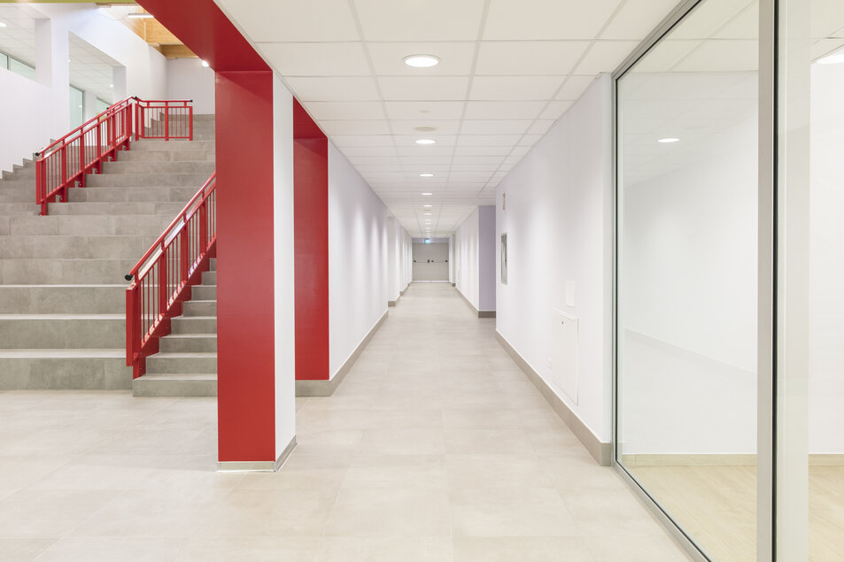 The students appreciate the glass walls of the classrooms that allow them to see into other classrooms that generates a sense of community. What is most appreciated is the airflow quality, which is achieved by mechanical filtered ventilation with a CO2 sensor to ensure greater indoor air quality while also lowering the danger of contagion. The common consensus is that this school foster an environmentally friendly atmosphere in which children may be taught on sustainability, become aware of their role in a community, and comprehend the importance of the human-environment interaction. The project was created by a team of technicians who each brought their own set of experiences and skills to the table. The building phase was carried out in the same manner, with each step's results being monitored. Meetings were held on the construction site with the Chamber of Architects and Engineers to share and disseminate the lessons learned