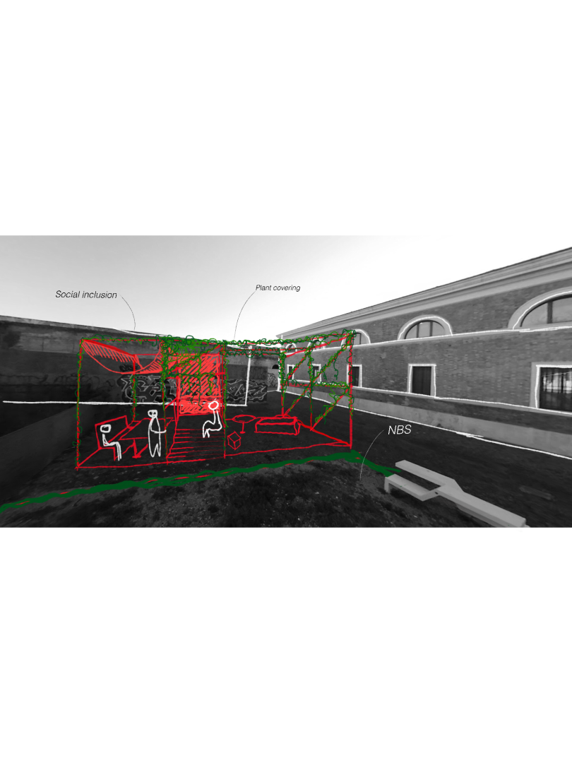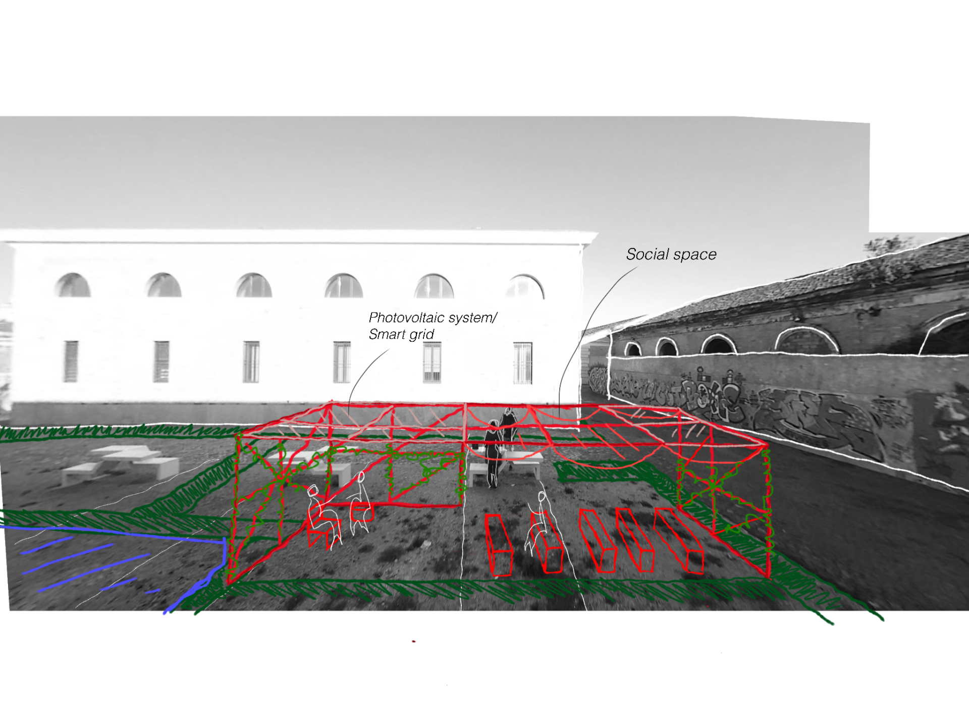 The idea is to create a socially inclusive multifunctional space that is also aesthetically pleasing and above all sustainable, using renewable energy sources and greenery as a connector space.