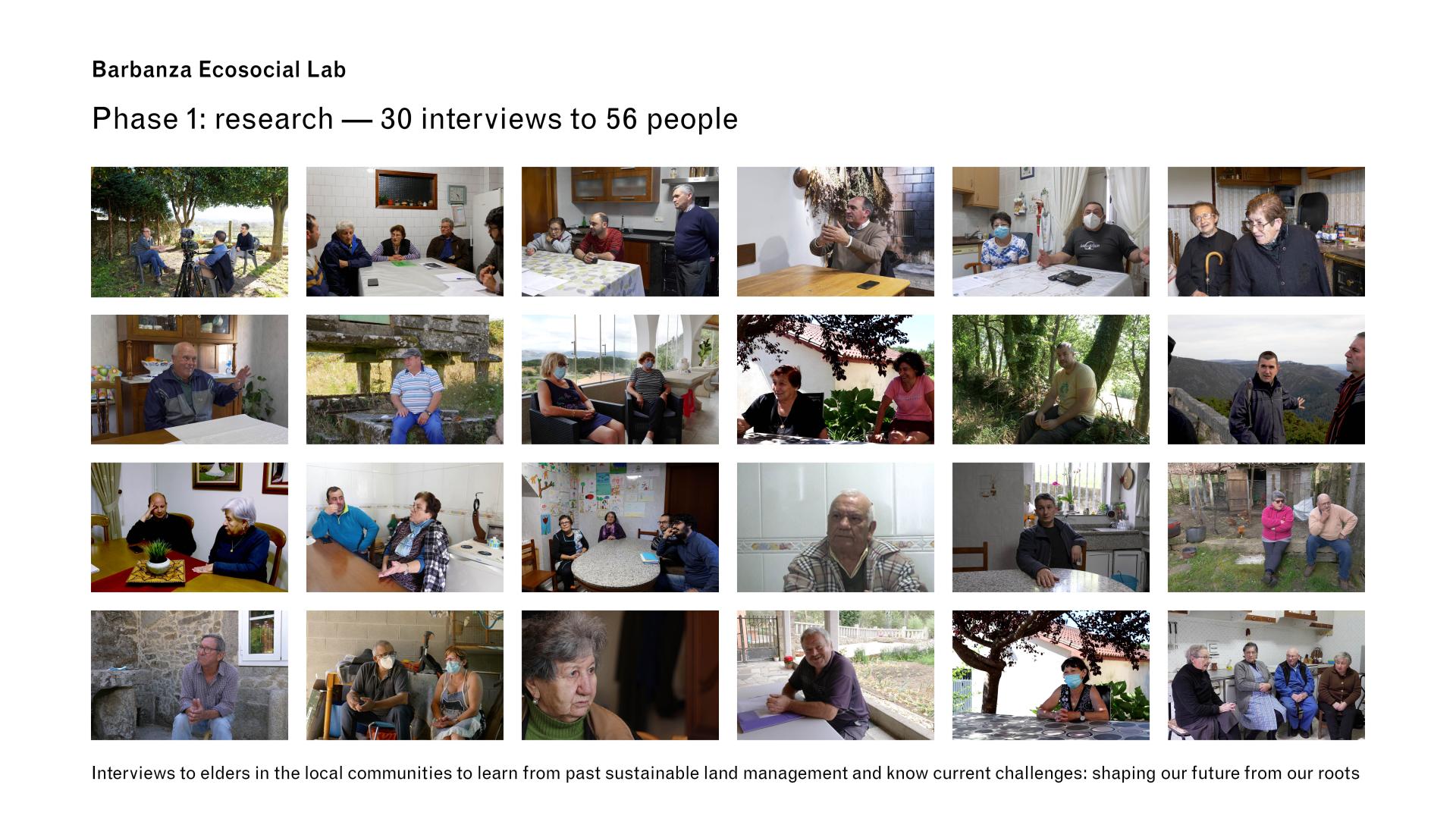 The interviews conducted with members of the local communities were central to research in order to delve deeper into former farming practices, community values or labour and market relations. Most of the people interviewed were between 60 and 90 years old and therefore witnessed the processes of deagrarianisation of the rural areas they inhabited. They are therefore people who constitute the living memory of these places. All the interviews were recorded on video, which meant that they could be consulted later during the course of the research. This also made it possible for fragments and images of the interviews to be used in public communication actions of the project, on barbanzaecosocial.org, on social networks or attached to press releases.