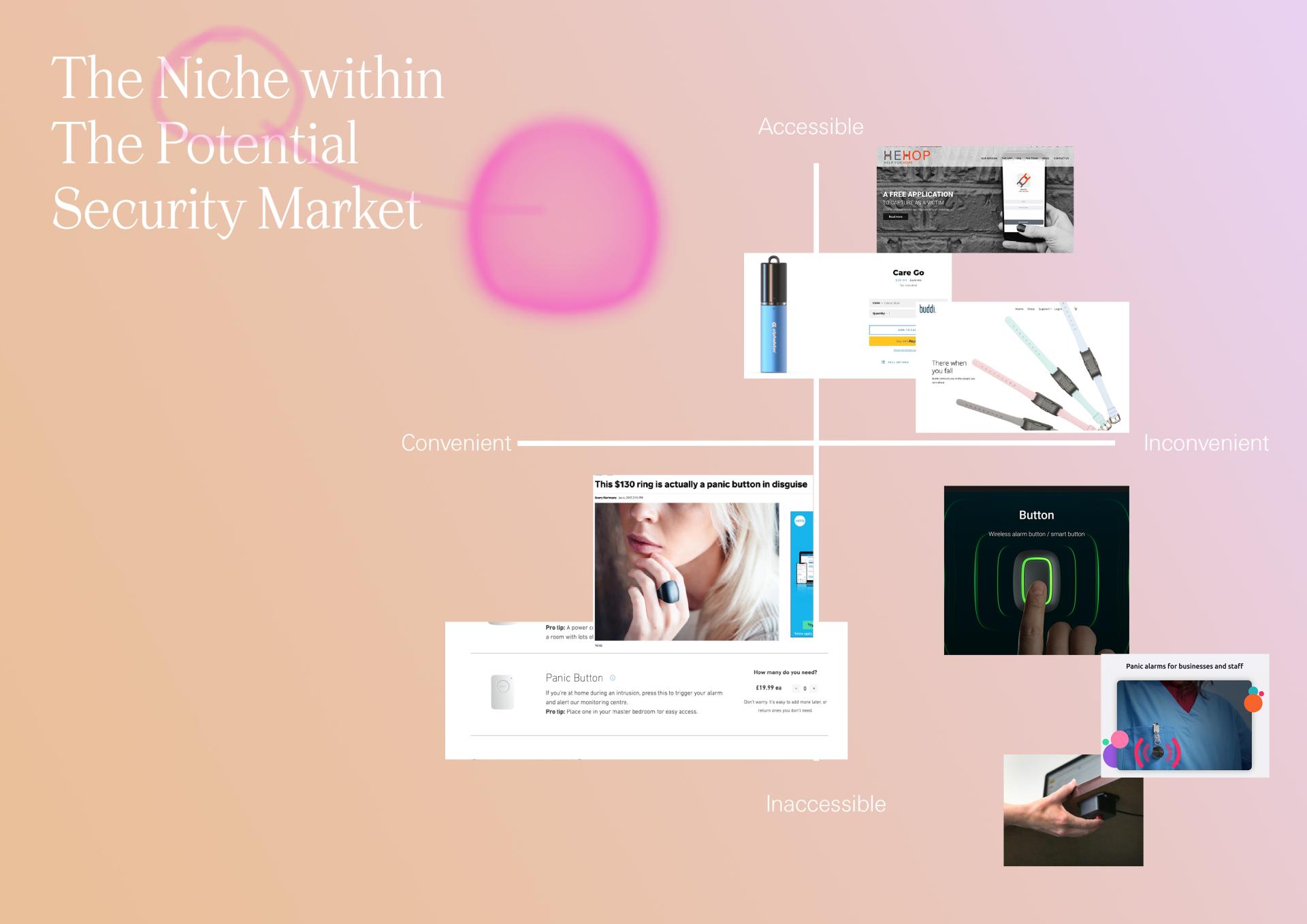 - As a centralised system there are many questions regarding appearance and position to be answered. For now, I envision a well disguised, yet attractive range of objects, that isn't invading the design of the homes and is yet able to be reached and communicated through easily in the whole space. I want the design to speak to the female-identifying target group and be comforting in looks and touch, without appearing like a technology. To be exclusively attractive and accessible for females the security products should come in a variation of femme shapes and colours that could potentially be confused with female hygiene or cosmetic items men have no interest in, but they should not be patronising as well.