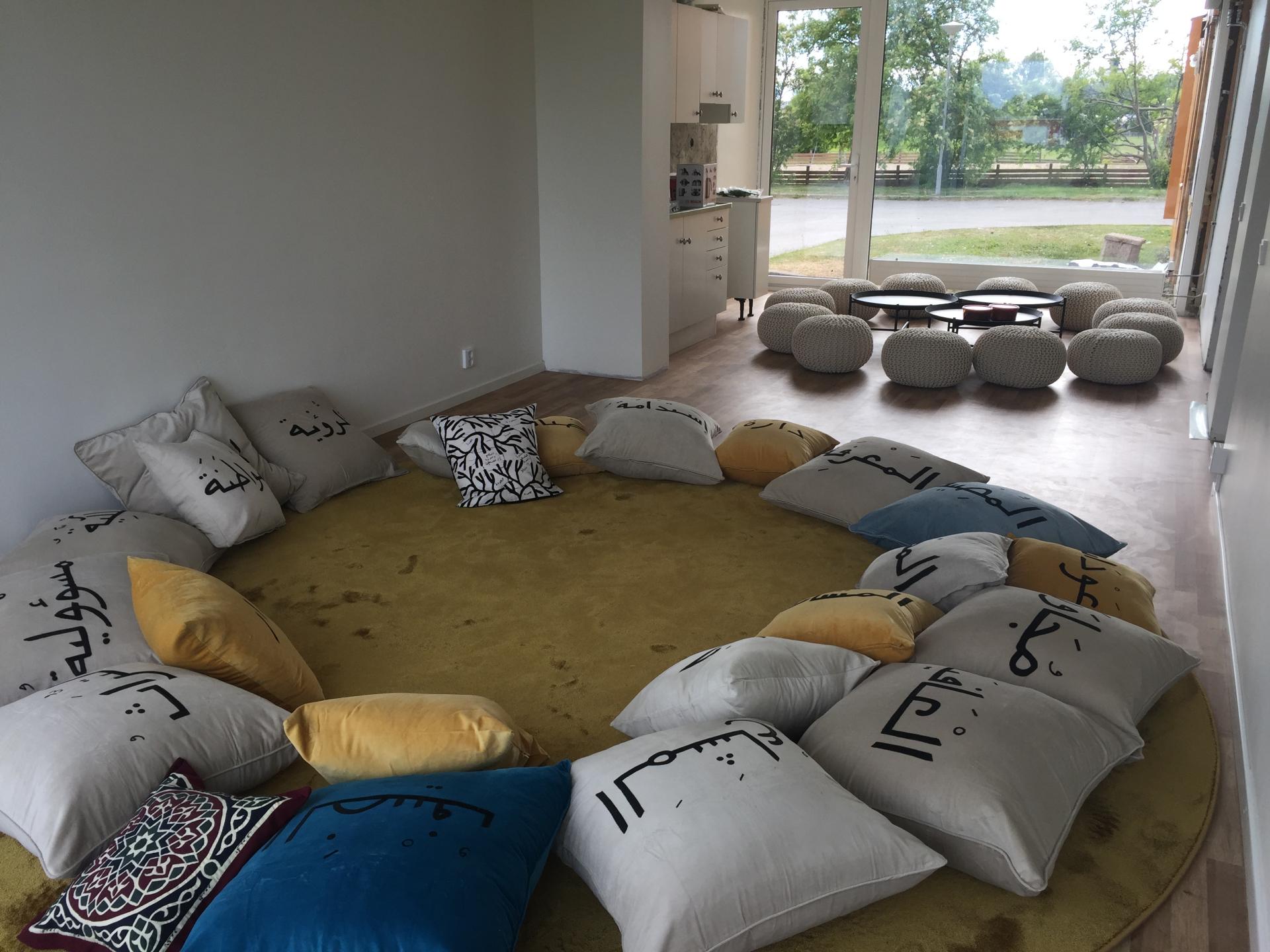 The Living Room project that manifested itself in Boden was inspired by the story of a Syrian refugee couple Yasmeen Mahmoud and Ibrahim Muhammad Haj Abdulla, who had moved to Boden two years before the start of the project. They drew on the tradition of hospitality, never accepting that they should give up their right to be hosts in their new home. They opened up their living room to host both Swedes and others which has become a way to desegregate their position within Sweden and act as active members of society. Their experience was the basis for creating a collective Living Room in the ground floor of the “Yellow House”, by opening up what was a closed space, and allowing the wider community to exercise their right to be hosts.