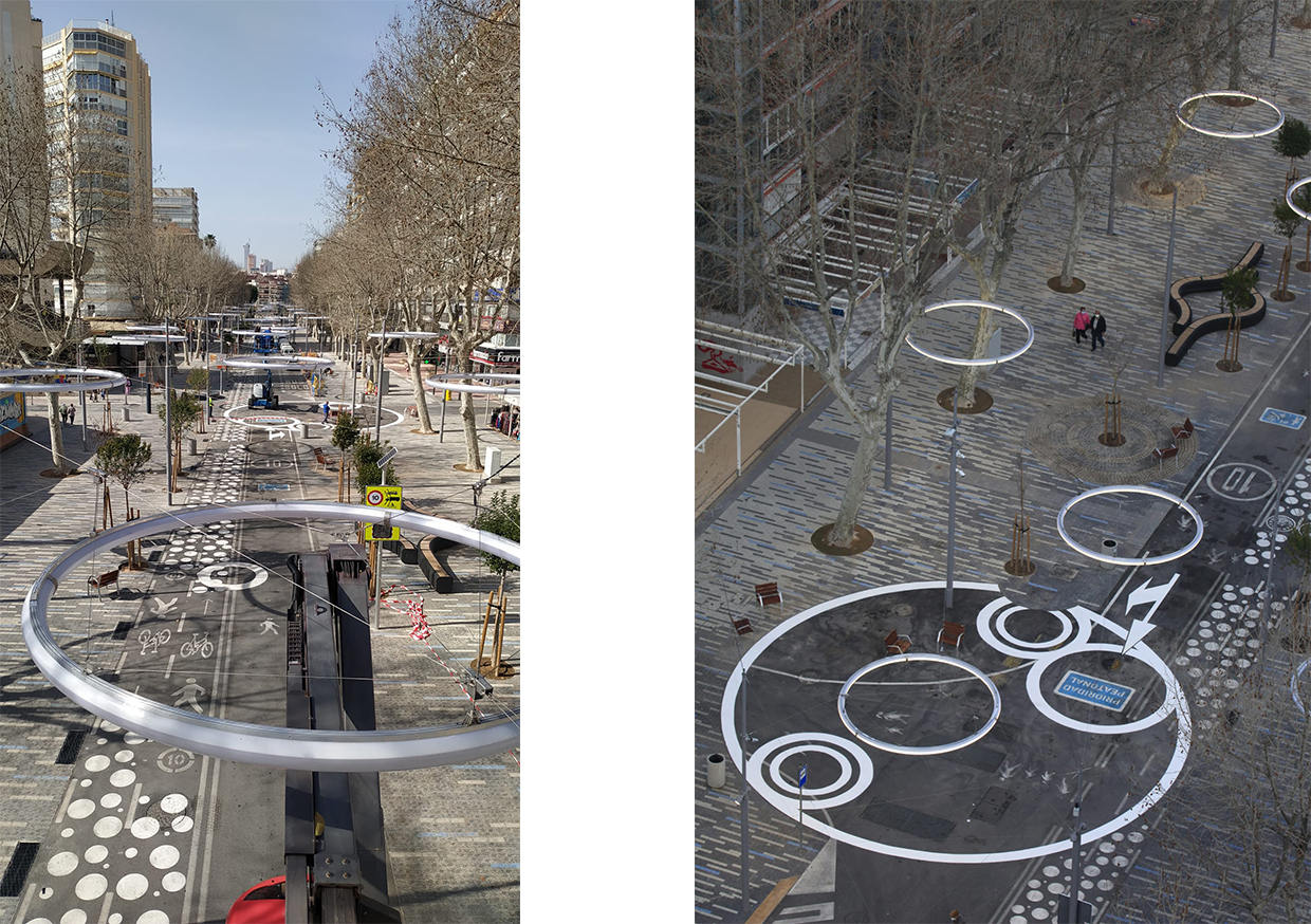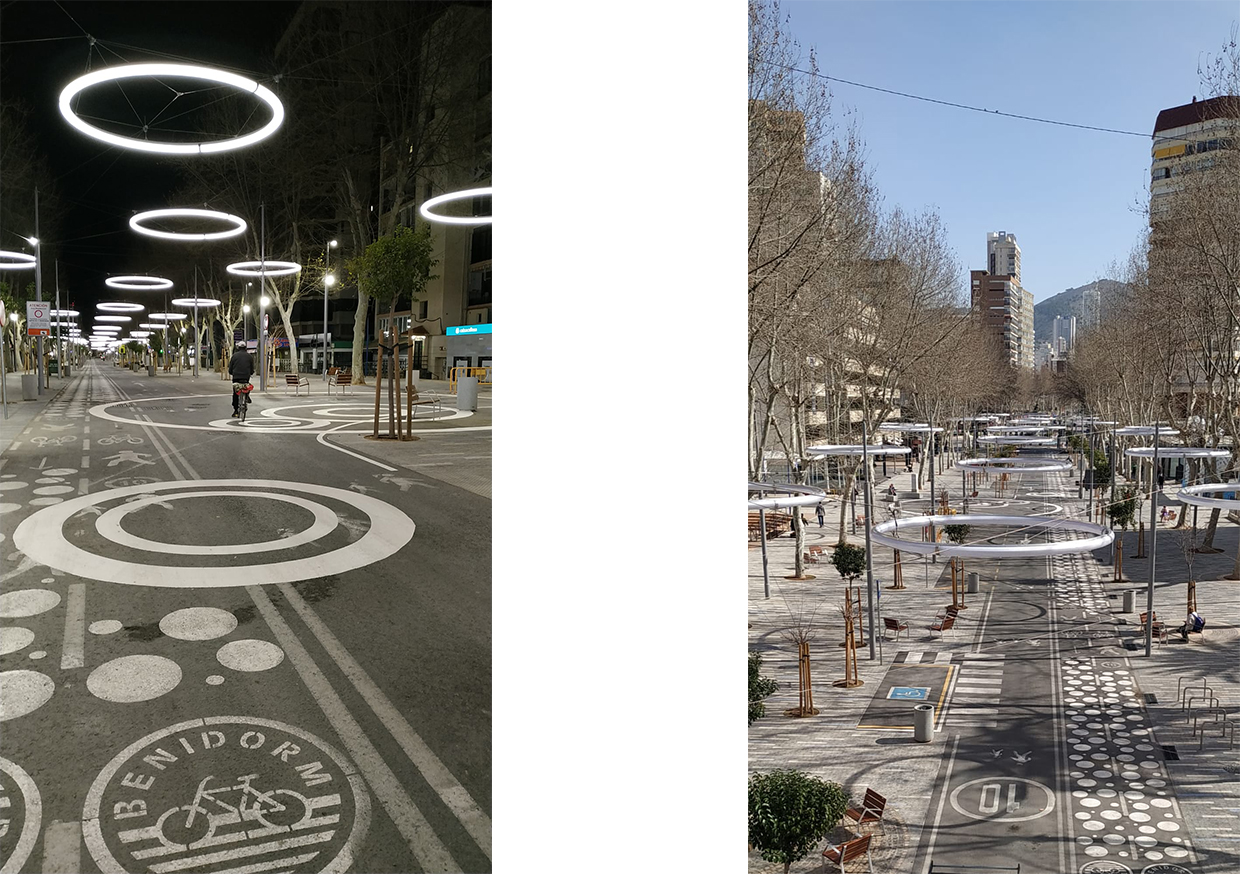 The intervention is part of Benidorm's commitment to turn its streets into places of relationship and promote non-motorized modes of transport. Nowadays, more than 90 km of bike lanes and almost a hundred streets and pedestrian walkways has been implemented in the last 5 years.