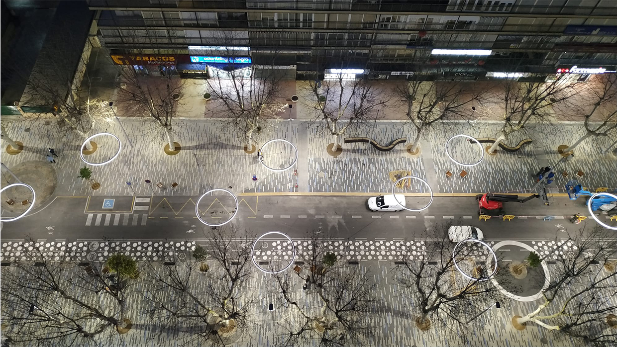 At the most unique point, the confluence of the Avenue with the Plaza de la Hispanidad, there is a Techno-landmark. It is a 20m high three-dimensional structure, covered with LED panels. It will make it a point of reference, concentration and celebrations of outdoor activities in the heart of the pedestrian area.