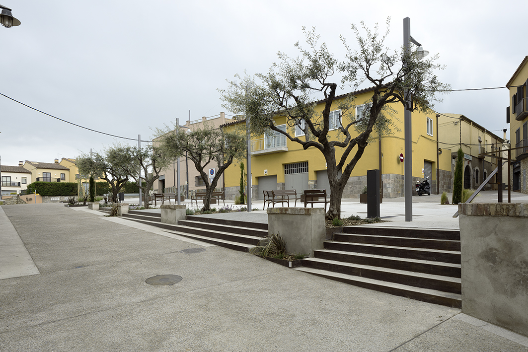 The project contemplated the existence of ancient olive trees in the square and understanding that they are elements that are part of the landscape of the Alt Empordà, not only are they maintained, but that their presence is enhanced by expanding the shrub and planting an undergrowth of aromatic species. In the same sense, two more species are planted, three hawthorn trees, as an identifying tree of the territory and the cypress trees, which accompany the paths of the Alt Empordà.