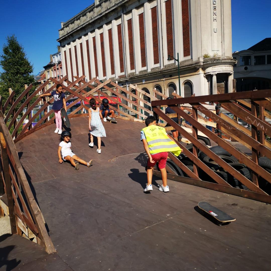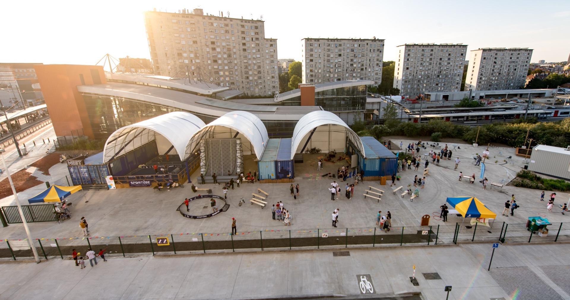 Blowing life into the West Station! Molenbeek could not wait... before big urban transformations along former railway tracks, local and regional authorities and citizen organizations came together to create a temporary, reusable and portable new public space : Molenwest Square ! The site, built in a few months and made with arches and reusable sea containers, gives shelter for social initiatives as well as a place to meet, play, talk and create.